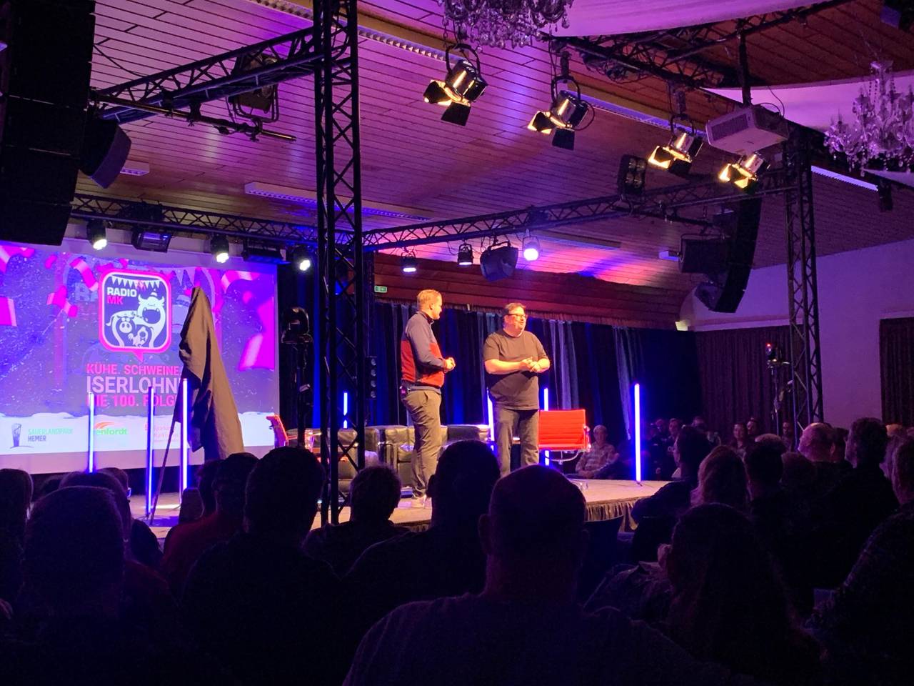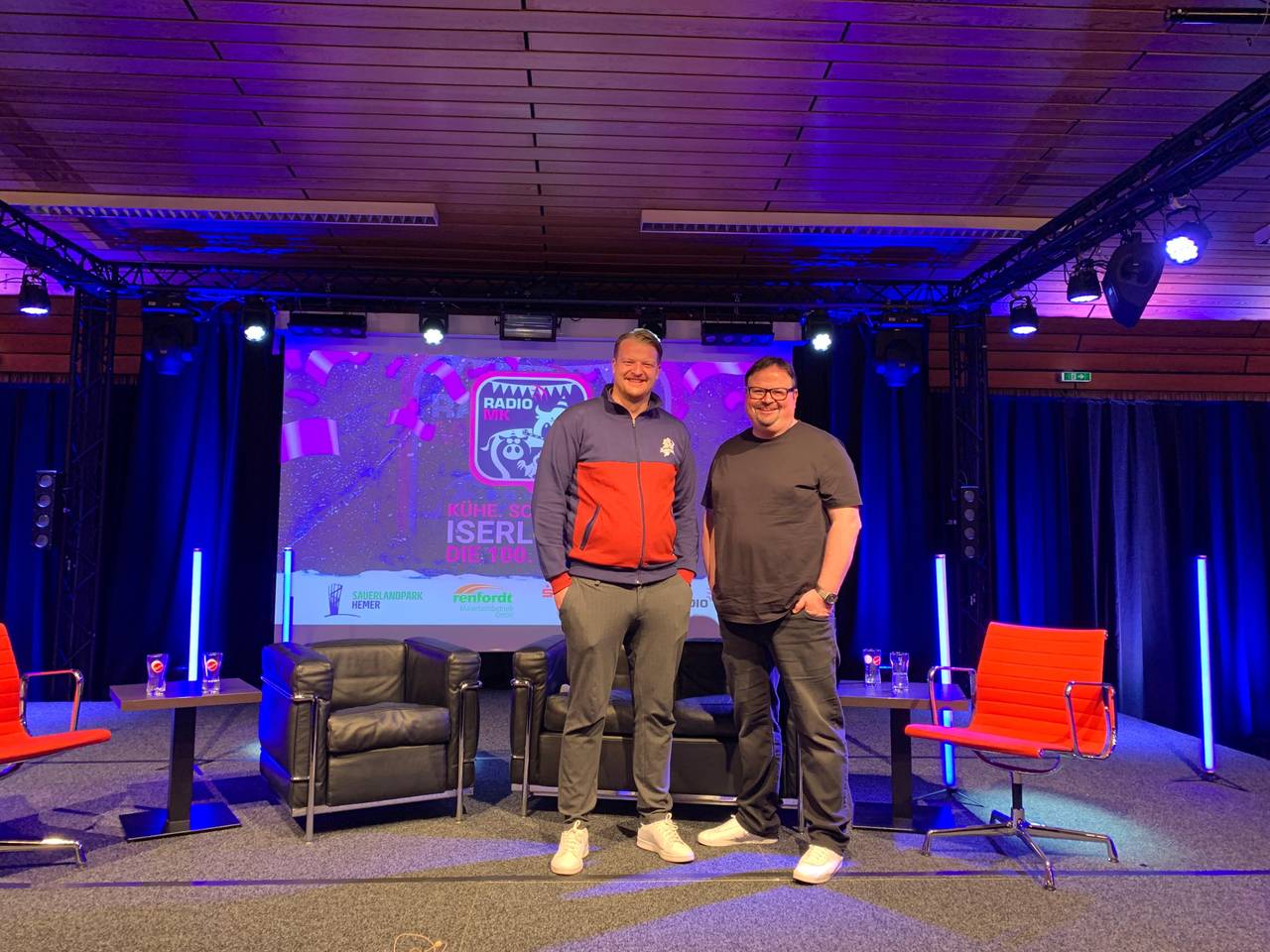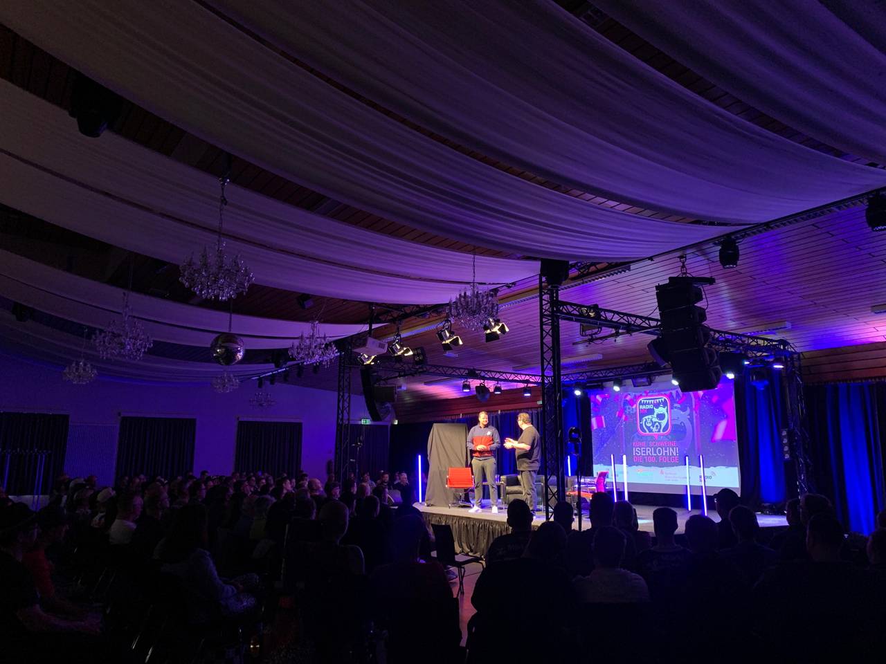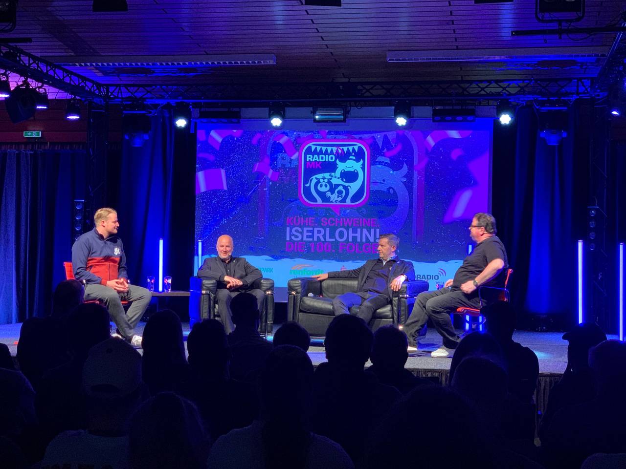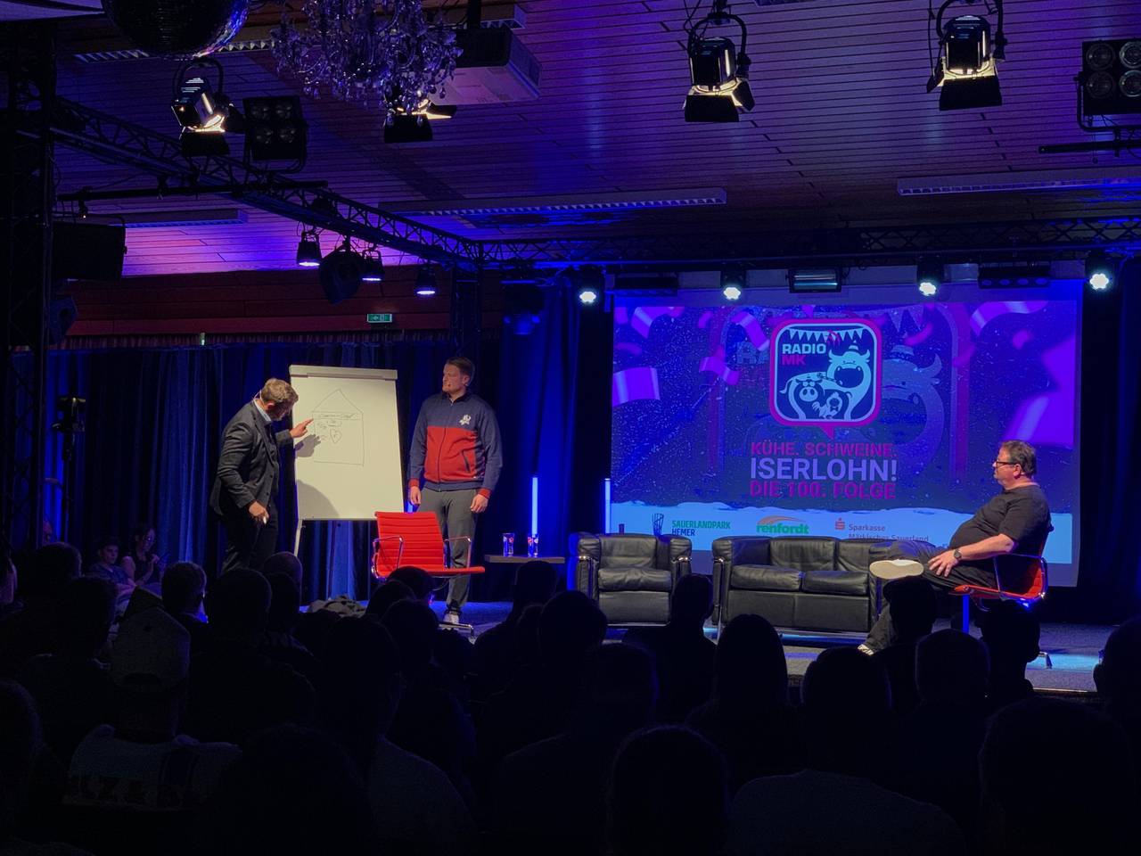 Knapp drei Jahre läuft der Eishockey-Podcast "Kühe. Schweine. Iserlohn." jetzt. Mehr als 250.000 Menschen haben in der Zeit reingehört. Jetzt war es soweit - Der Podcast mit den Iserlohn Roosters feiert sein 100. Jubiläum. Die beiden Podcaster, Mirko Heintz und und Felix Dötsch, haben sich dazu natürlich etwas Besonderes überlegt. Deshalb wurde die 100. Folge am Mittwoch Abend (21.05.) live vor Publikum aufgezeichnet, und zwar im Alten Casino vom Sauerlandpark Hemer. Wir von Radio MK waren auch dort und haben Bilder für euch mitgebracht. Zu hören gibt es die Folge hier.