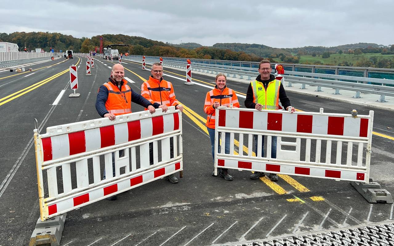 „Der Neubau ist reibungslos und schnell erfolgt. Mit der Freigabe sind wir vorbereitet auf den Tag, an dem der Verkehr in Lüdenscheid wieder über die A45 fließen kann." - Dirk Stiepert, Leiter der Außenstelle Hagen der Autobahnniederlassung Westfalen.