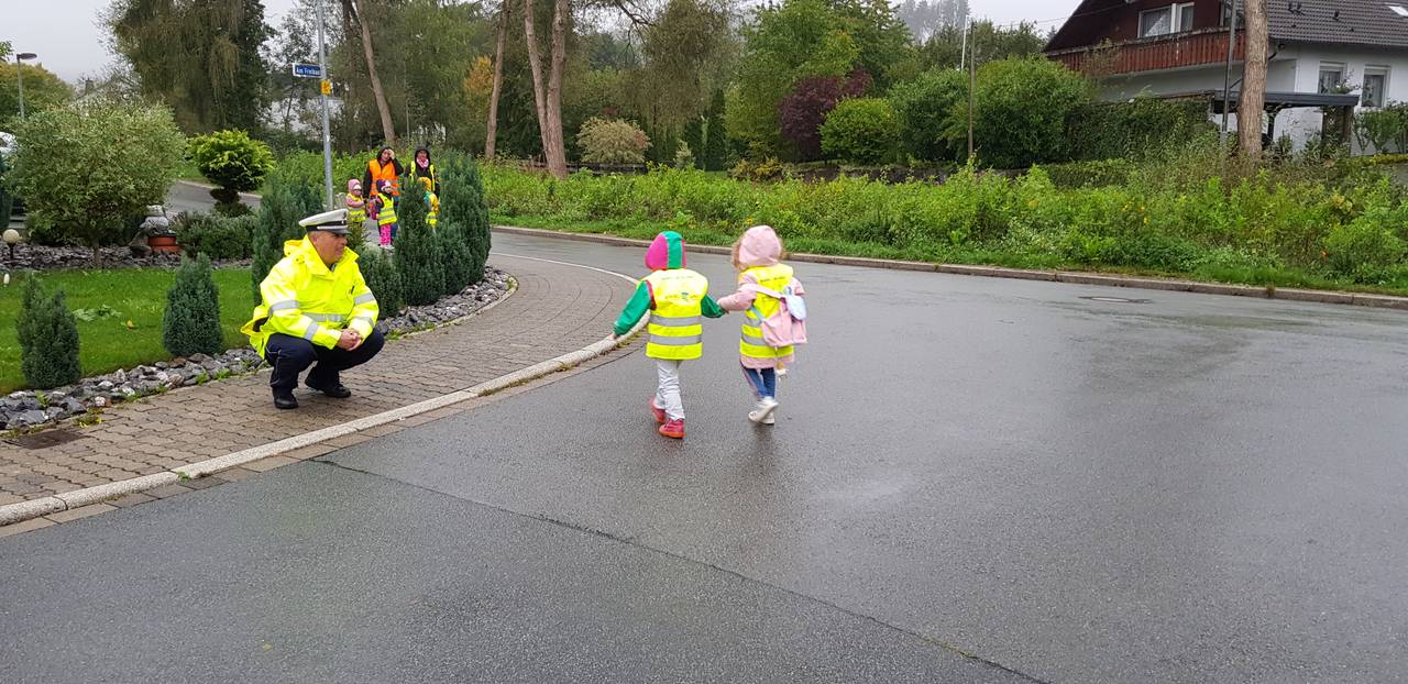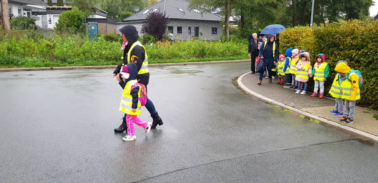 Heute fiel der Startschuss für das Projekt. Dabei werden alle Eltern gebeten, ihre Kinder nach Möglichkeit nicht mehr mit dem Auto zum Kindergarten zu bringen oder abzuholen. Damit will man unter anderem die Sicherheit im Verkehr, den Klimaschutz und die Bewegung fördern. Die Aktion ist freiwillig. Unter anderem wird ein Shuttle-Service vom Freibadparkplatz angeboten. Dabei werden die mit Warnwesten ausgestatteten Kinder von einer Erzieherin und bestenfalls einer Mutter oder einem Vater auf dem Weg zum Kindergarten begleitet. Die Kinder müssen aber vorher dafür angemeldet werden.