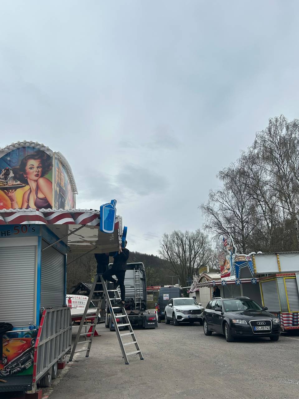 In Iserlohn läuft der Aufbau für die Osterkirmes auf vollen Touren. Die Schausteller bauen ihre Fahrgeschäfte wieder auf dem Festplatz am Seilersee auf. Die Osterkirmes in Iserlohn beginnt am kommenden Samstag (30.3.). Bis zum Sonntag, 7. April könnt ihr jeden Tag von 14-22 Uhr Fahrgeschäfte und Leckereien bei der Kirmes genießen.