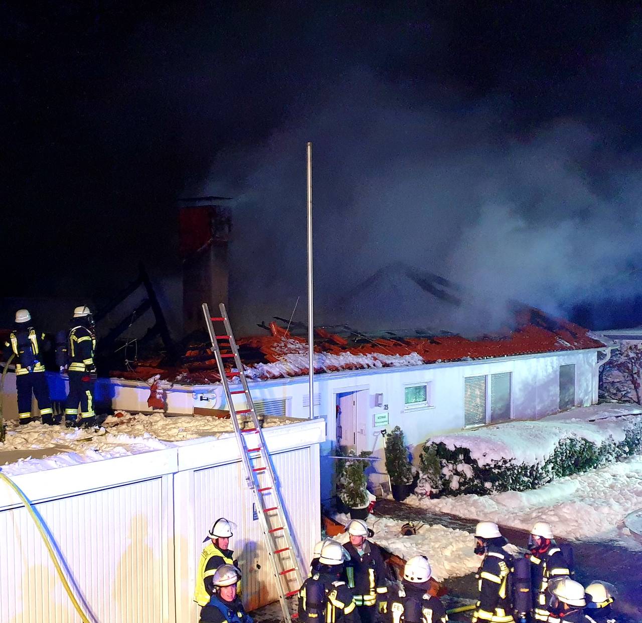 Bis in die frühen Morgenstunden (01.12.) war die Feuerwehr in Schalksmühle im Einsatz bei einem Gebäudebrand. In der Straße "Im Eichholz" stand gegen Mitternacht der Dachstuhl eines Bungalows in Vollbrand, der ein Friseursalon und ein Vermessungsbüro beherbergte. Beim Eintreffen der Einsatzkräfte brannte dieser bereits in voller Ausdehnung. Trotz des schnellen Einsatzes konnte das Gebäude nicht mehr gerettet werden. Glücklicherweise befanden sich zum Zeitpunkt des Brandes keine Personen im Gebäude.