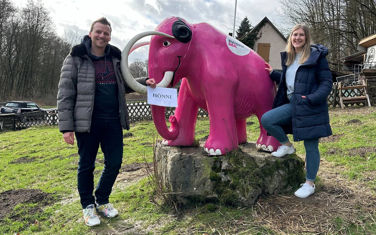 Das Radio MK Mammut in Balve-Sanssouci heißt jetzt offiziell Hönni. Unsere Guten Morgen-Macher, Patrick Rickert und Pamina Klee, haben es "getauft".