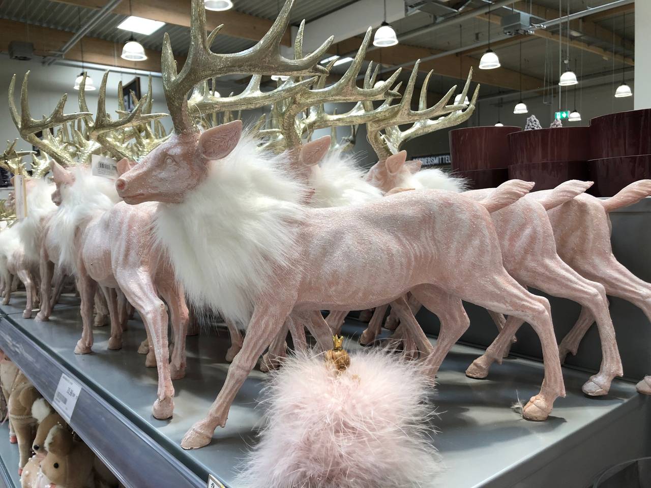 Würde so etwas bei euch am Weihnachtsbaum stehen? Rosane Hirsche mit etwas Fell sind ein Weihnachtsdeko-Trend in 2019.
