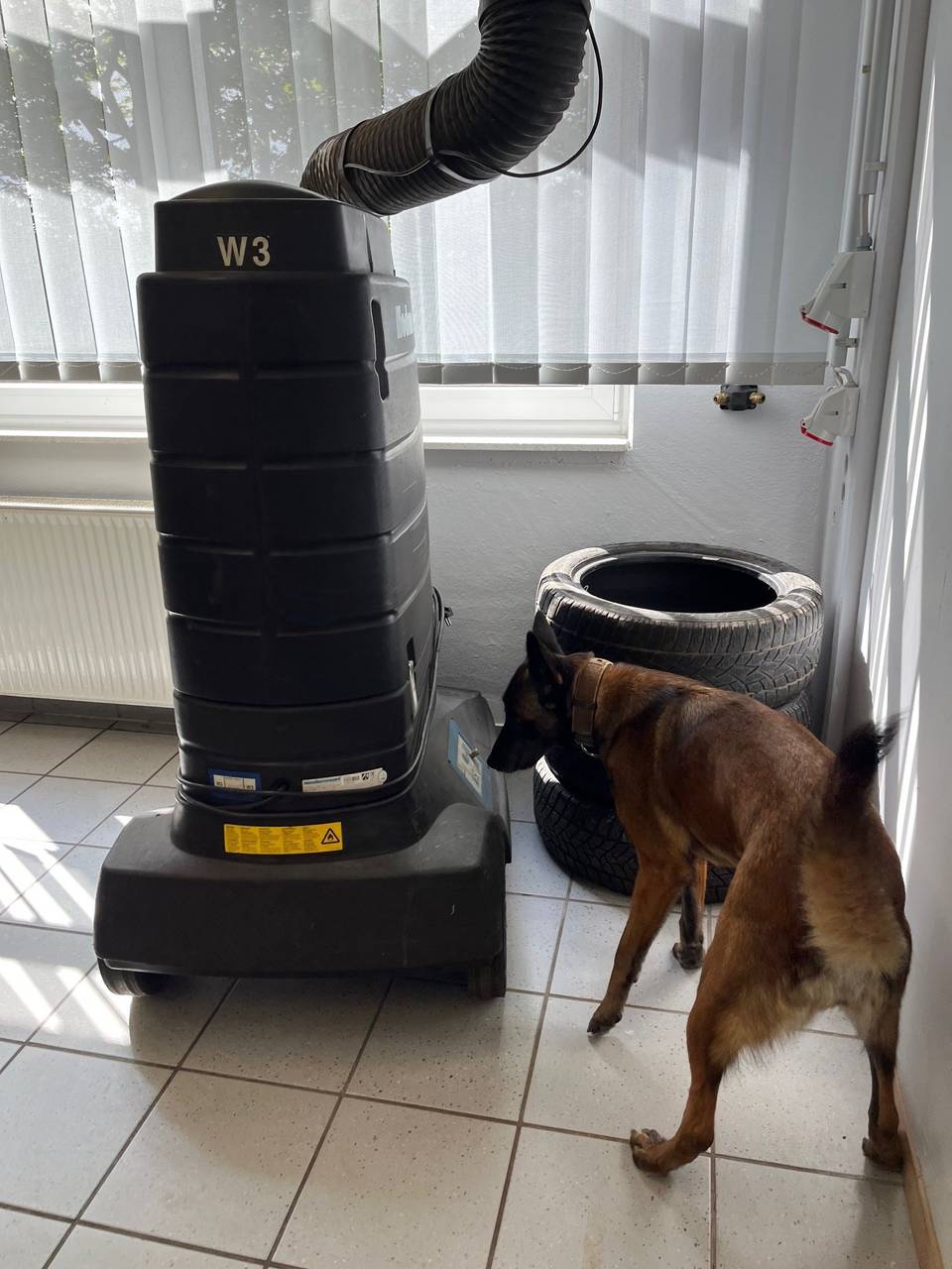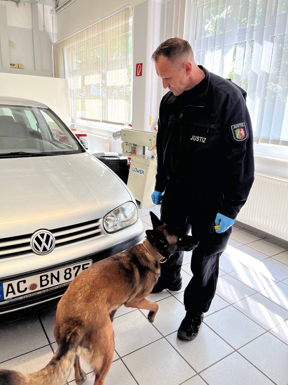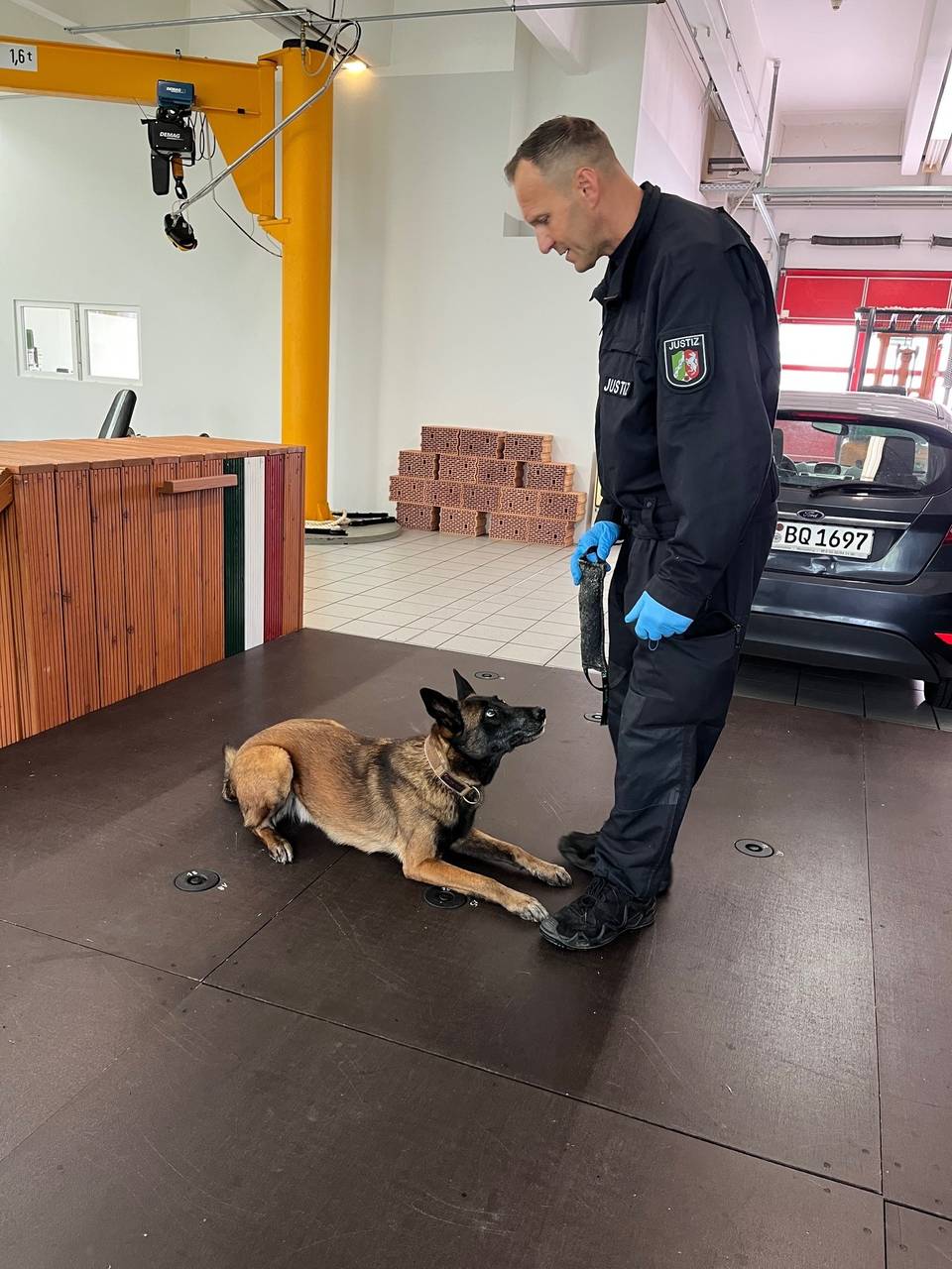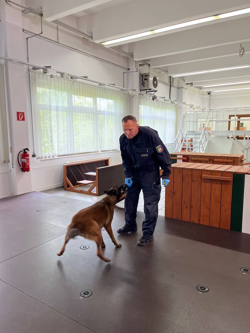 Im Spürhundezentrum in Schalksmühle ist im Prinzip ein komplettes Gefängnis nachgebaut worden. Da sind alle Räume zu finden, die es in einer normalen JVA auch gibt. Und dort sind auch alle Verstecke vorhanden, die sich die Gefangenen so einfallen lassen. Darius Szeliga und seine fünfjährige Hündin Alva üben im Spürhundezentrum. So wie die anderen der Staffel: Es gibt inzwischen 7 Hundeführer und 13 Hunde - davon 3 Junghunde in der Ausbildung. Alle trainieren seit 2022 in Schalksmühle. Die Vierbeiner mit der feinen Nase finden Verstecke, auf die Menschen als Suchende niemals kommen würden. Wie sie die Mikrochips erschnüffeln können, ist ein Geheimnis. Die Justizmitarbeiter wollen sich da nicht in die Karten gucken lassen. Ihre Arbeit ist wichtig, weil Handys und Datenspeicher im Gefängnis für weitere Straftaten wie Rauschgifthandel oder Erpressung verwendet werden. Aus diesem Grund sind solche Geräte in der JVA auch verboten. Allerdings haben Gefangene 24 Stunden am Tag Zeit, sich neue Schmuggelwege und Verstecke einfallen zu lassen. (FrK)