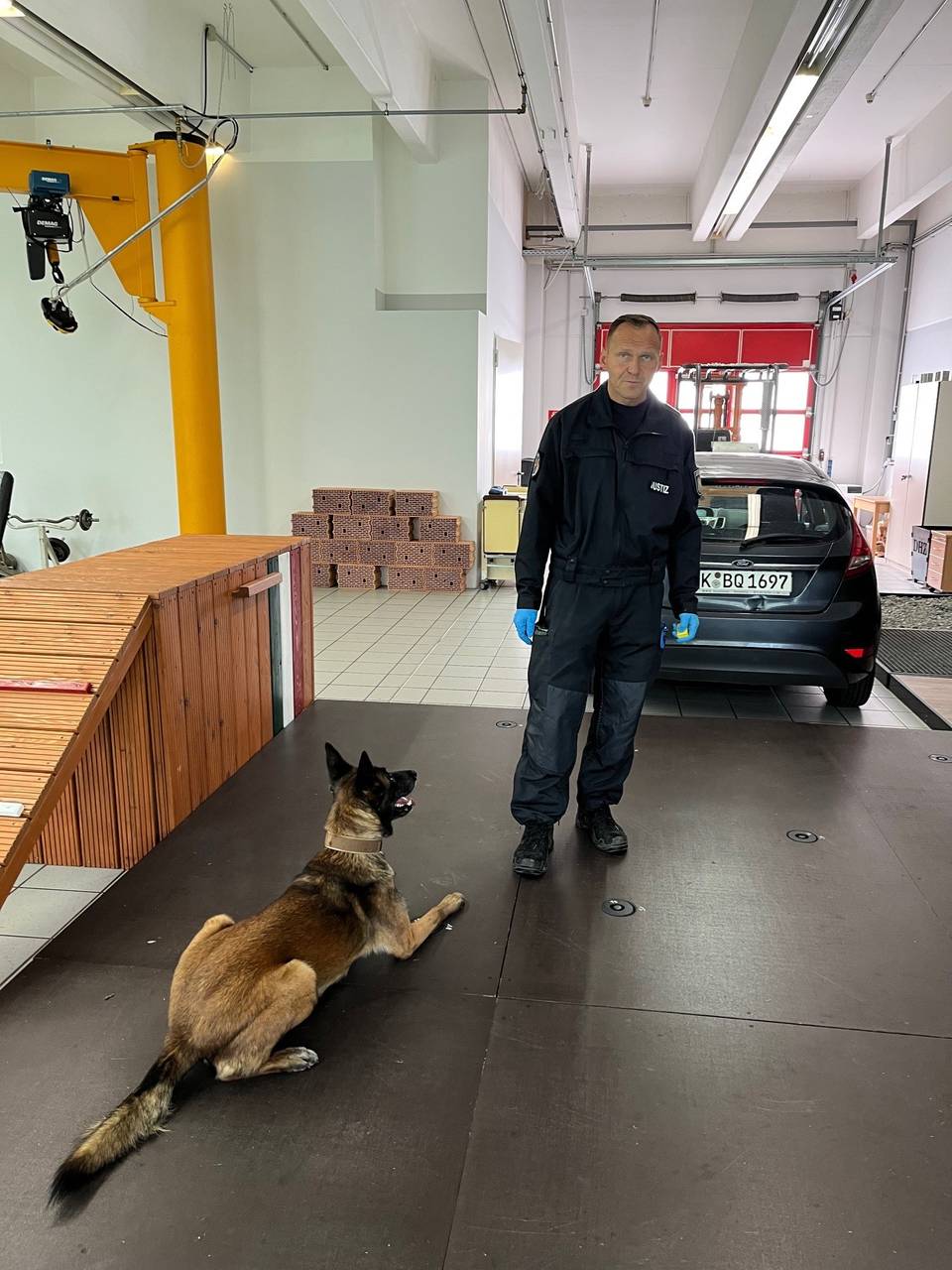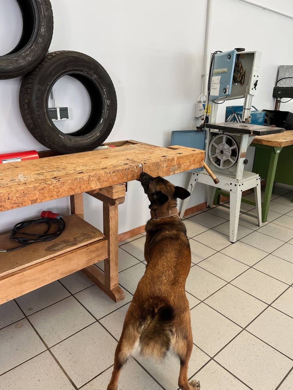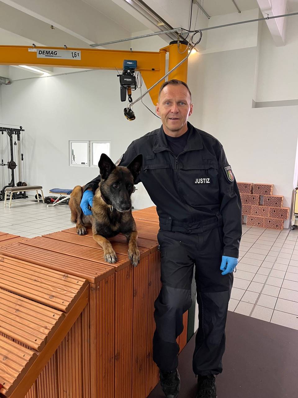 In Schalksmühle werden Schäferhunde in einem Trainingszentrum als Suchhunde für Handys und Speichermedien ausgebildet. Die Tiere lernen hier, wie sie im Gefängnis versteckte SIM-Karten, SD-Karten, Festplatten oder Mikrohandys finden. Im Bild: Spürhündin Alva und Hundeführer Darius Szeliga. Auf Facebook könnt ihr euch die beiden beim Training anschauen.