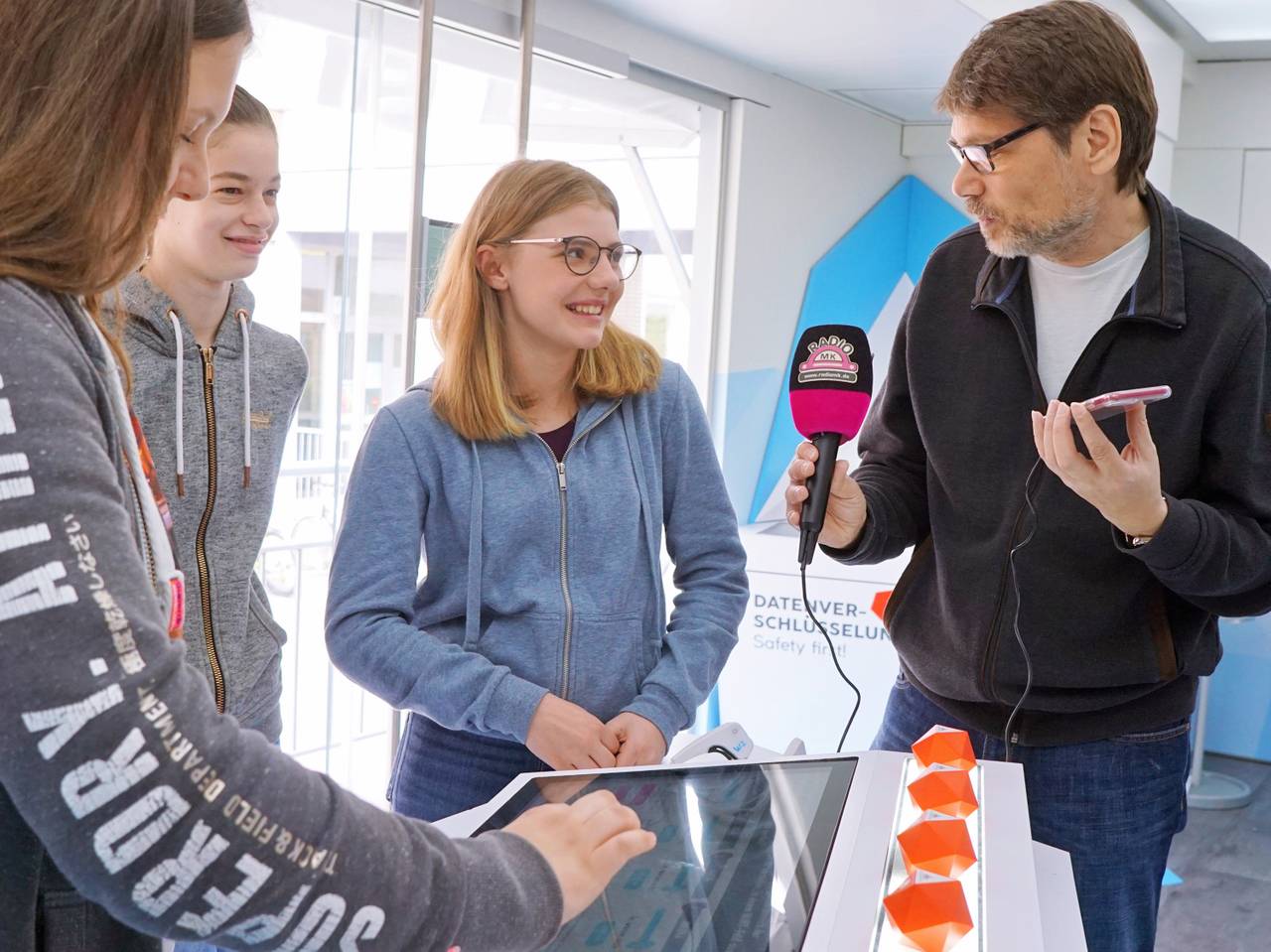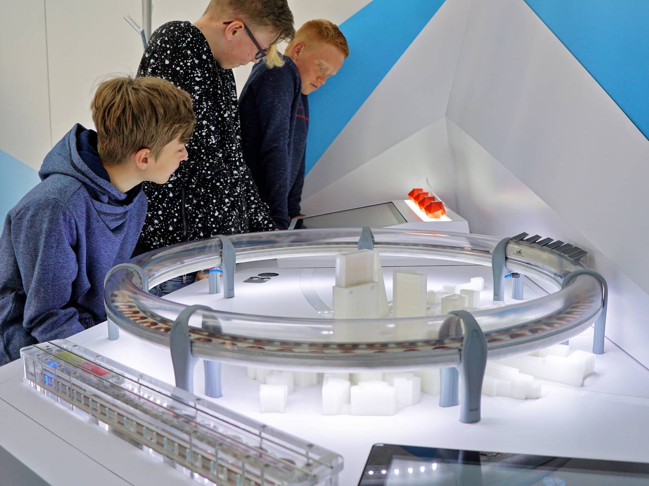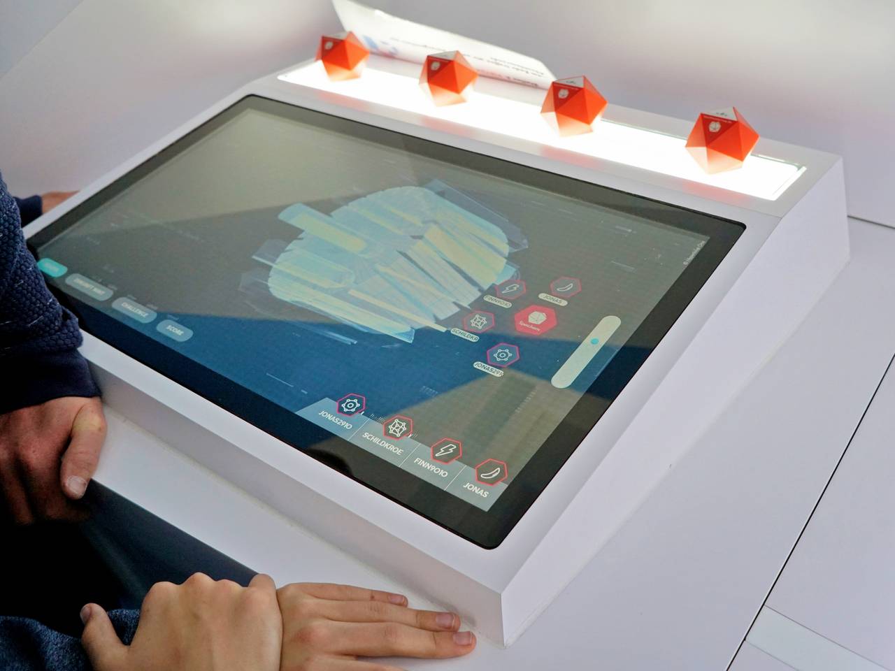 Einen Ball mit Gedankenkraft durch eine Hindernisstrecke steuern, einem Roboter beibringen, Kuscheltiere zu apportieren oder einfach nur einen Motor zusammensetzen, während die Anweisungen dazu sichtbar durch die Luft fliegen: das geht im TouchTomorrow-Truck an den Walburgisschulen in Menden. Was den meisten Lehrern vielleicht heute noch wie Zukunftsmusik erscheint, ist für die vielen Schüler bald Gegenwart. Und darauf wollen die MINT-freundlichen Walburgisschulen ihre Schüler vorbereiten. MINT - also Mathematik, Informatik, Naturwissenschaft und Technik steht da sowieso sehr im Mittelpunkt des Unterrichts. Bis zum 13. Mai wird der Truck noch auf dem Schulhof stehen.