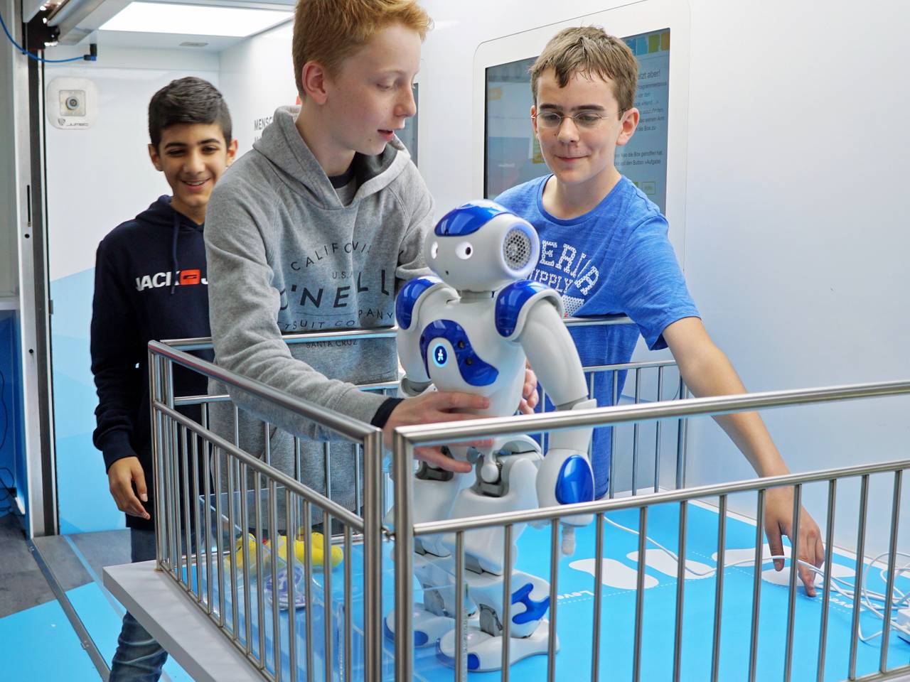 Schüler programmieren einen Roboter.