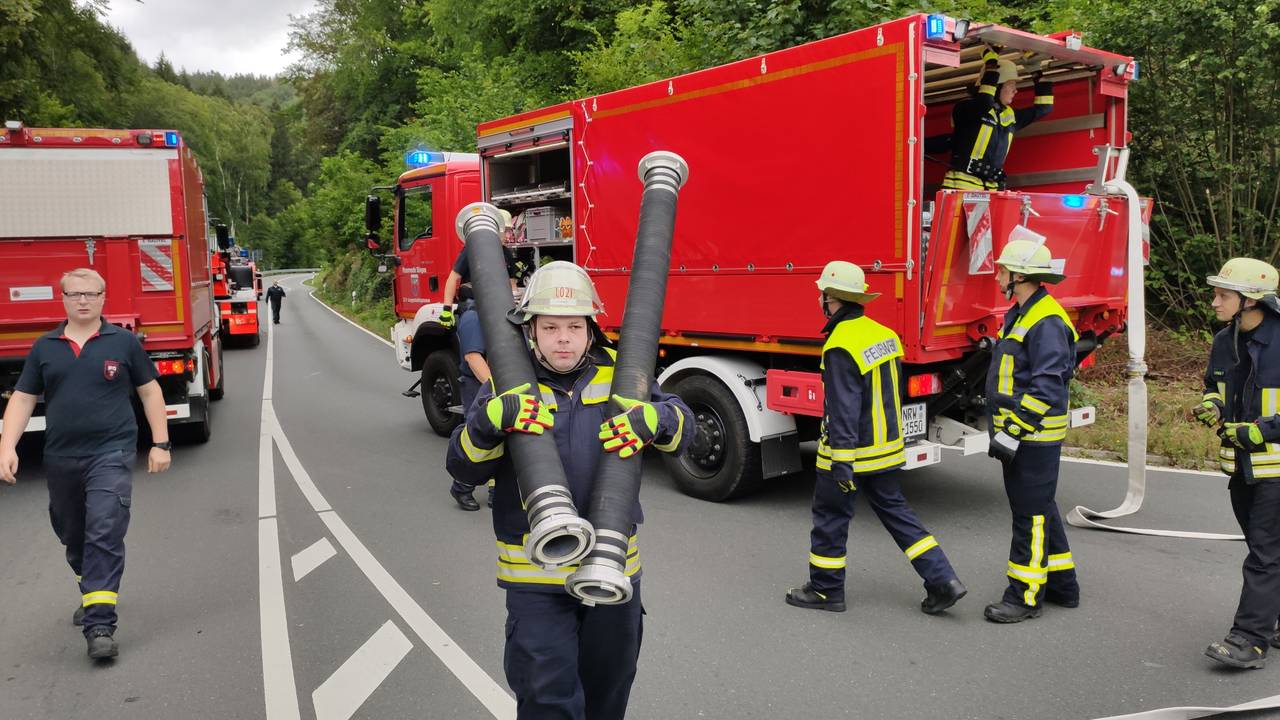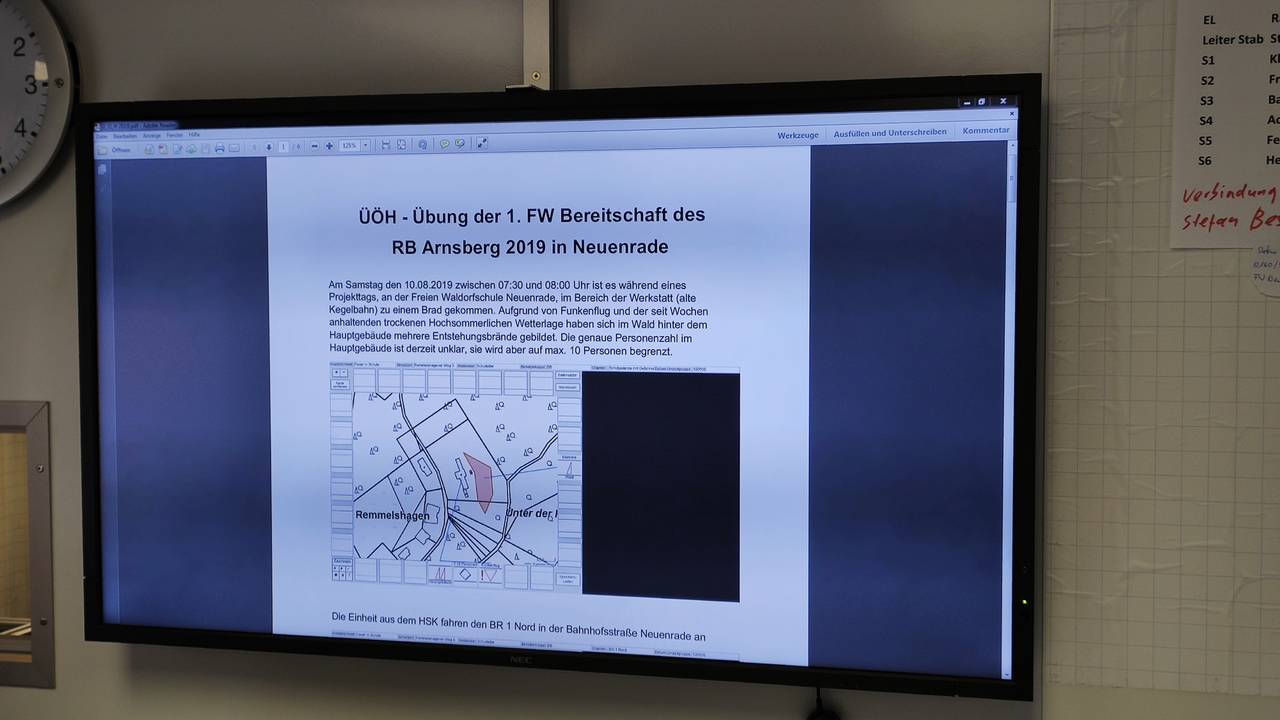 Das Szenario der Übung war ein großer Waldbrand im Gebiet Remmelshagen, der Schüler in der Waldorfschule bedroht. Um ausreichend Löschwasser zu bekommen, mussten die Einsatzkräfte das Wasser aus der 3,5 Kilometer entfernten Lenne nutzen. Die Feuerwehrleute mussten dafür mehrere Kilometer mit hunderten Schläuchen überbrücken. An der Großübung haben Einsatzkräfte aus Werdohl, Neuenrade, Siegen-Wittgenstein, Olpe und dem Hochsauerlandkreis teilgenommen. Die Einsatzleitung war mit dem Verlauf sehr zufrieden.
