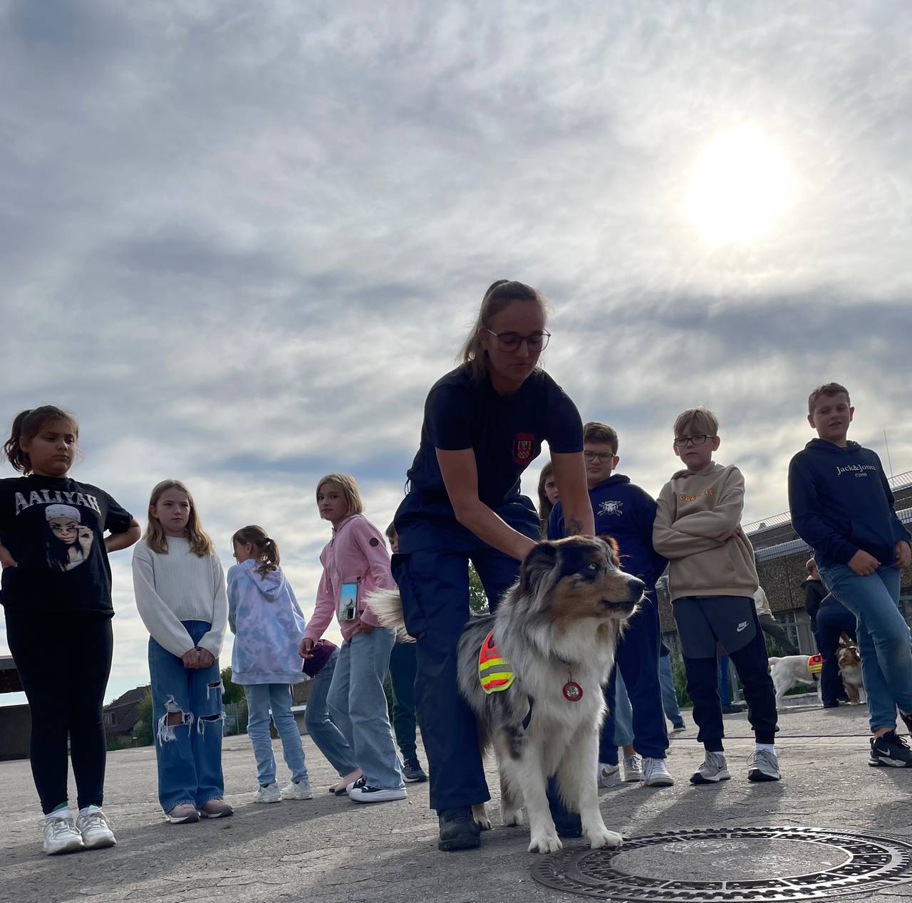 In der Woche vom 25.09. bis zum 29.09. hatten die Schülerinnen und Schüler der Klasse 5e an der Europaschule in Hemer eine ganz besondere Unterrichtsstunde. Die Rettungshunde der Freiwilligen Feuerwehr Iserlohn waren zu Besuch, um den Kindern die Arbeit der Rettungshundestaffel näherzubringen.