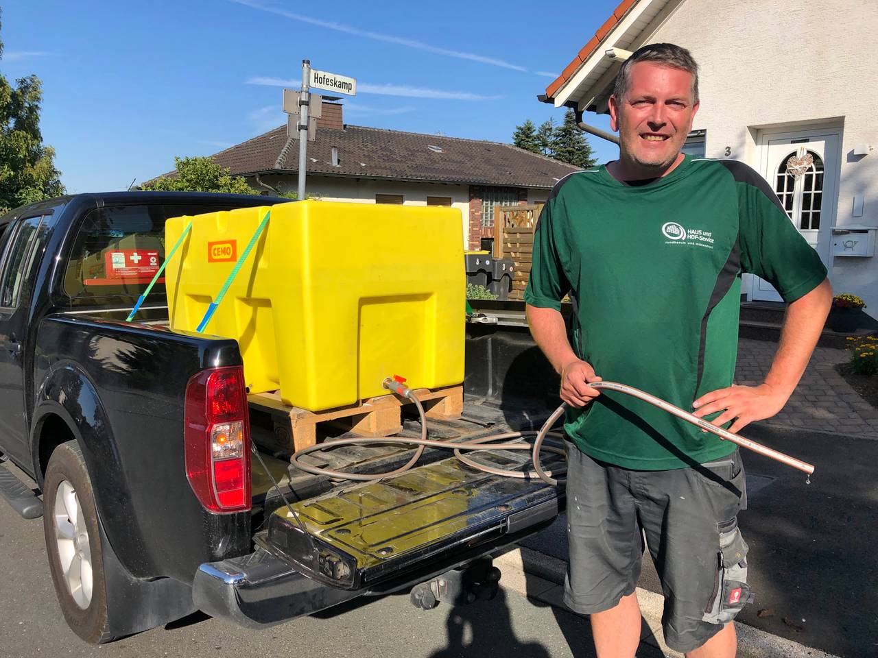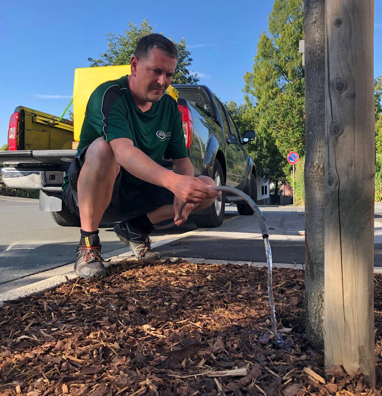Stephan Müller aus Menden sieht sehr besorgt aus, wenn er sich die Straßenbäume seiner Stadt ansieht. Vor allem in den Kronen der Bäume ist es zu erkennen. Es fehlt das Wasser. Blätter werden bereits kraus, rollen sich ein, vertrocknen. An einigen Bäumen müssen bereits Äste heraus geschnitten werden, weil sie trocken sind und sonst auf die Passanten fallen könnten. Andere wurden komplett gefällt. Die Stadt Menden bittet deswegen jetzt ihre Bürger, die Straßenbäume zu gießen. Die Bäume spenden uns Schatten, wir spenden ihnen dafür Wasser - ein gutes Geschäft, findet auch Stephan Müller. Beruflich hat er auch mit Gartenpflege zu tun, deswegen hat er sofort einen 500 Liter Tank auf seinen Wagen geschnallt und bringt das Wasser zu den Straßenbäumen. Er sieht das als seine Pflicht als Bürger der Stadt. Reporter Frank Köhler hat ihn dabei begleitet.
