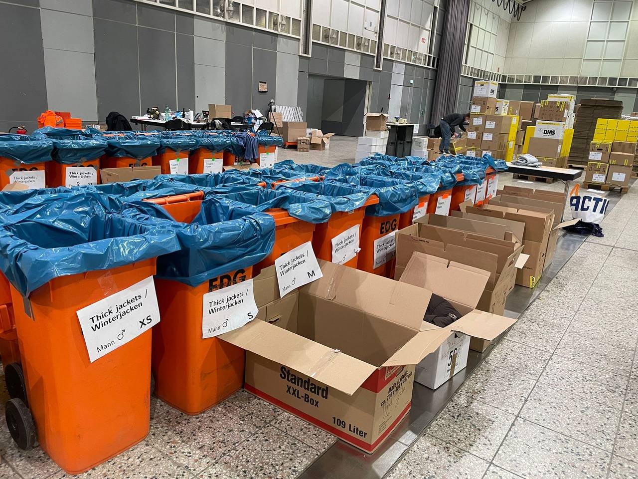 Das Team selbst von "Grenzenlose Wärme" besteht aus 13 ehrenamtlichen Studenten. Die müssen allerdings nicht alleine ran. Jeden Tag kommen etwa 80-100 freiwillige Helfer. Manche kommen neu dazu, manche Gesichter sieht man häufiger, Schulklassen, Vereine sind auch manchmal mit dabei. Neben Geldspenden, die auch hier bevorzugt werden, kann man auch einfach selbst mit anpacken, dafür sollte man vorher in die Liste auf grenzenlose-waerme.blog eintragen. Dort findet man auch ständig aktualisierte Bedarfslisten hoch, die sich teilweise stündlich ändern. Da kann man dann drauf schauen und das, was aktuell benötigt, vorbeibringen.