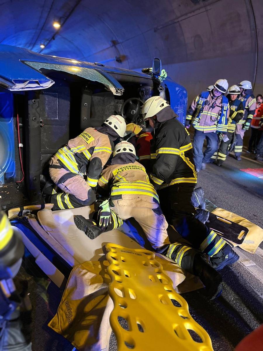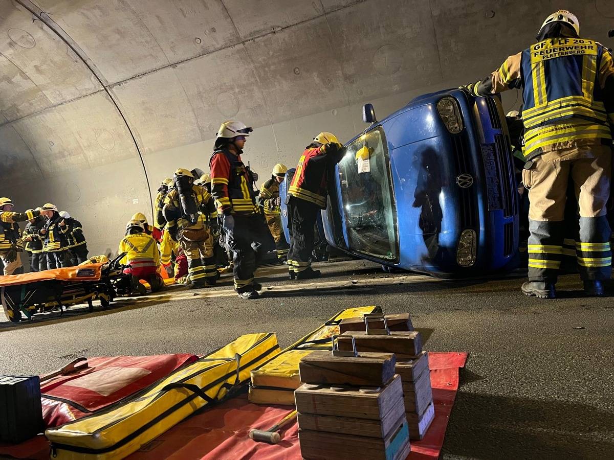 Feuerwehr übt fiktiven Einsatz im Hestenbergtunnel in Plettenberg