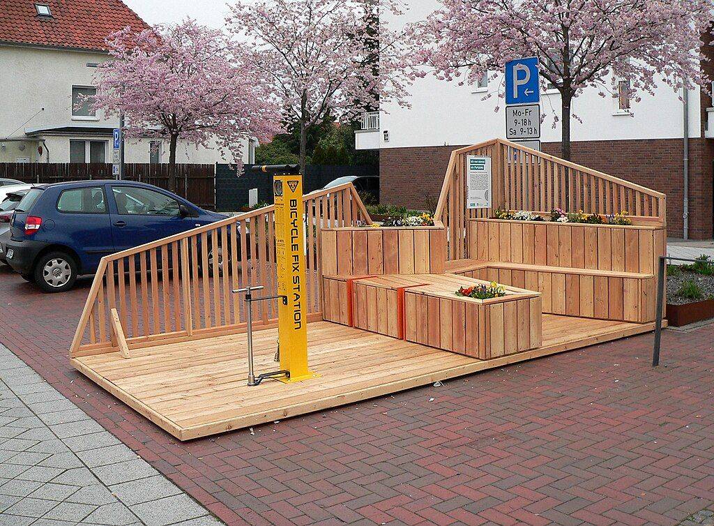 Parklets, das sind Aufbauten aus verschiedenen Modulen, z.B. Sitzmöglichkeiten, Bepflanzungen oder Fahrradständer. Sie können individuell zusammengestellt werden und sind meist aus Holz. Solche Straßenmöbel hätten einen positiven Einfluss auf die Aufenthaltsqualität, heißt es in dem Antrag für den Planungsausschuss.