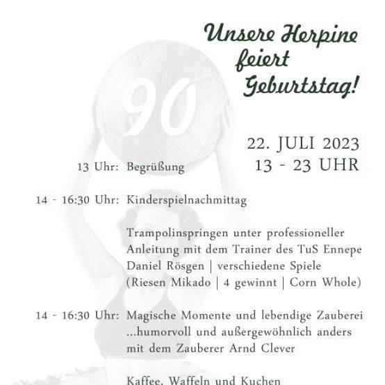 Seit 90 Jahren gibt es in Halver das Waldfreibad Herpine - das wird heute (22.07.) groß gefeiert. Ab 13 Uhr werden die Besucher begrüßt. Es ist ein buntes Programm geplant - mit Trampolinspringen, Zauberer, Grillstand und Livemusik. Der Badebetrieb läuft bis 18.30 Uhr. Gegen 23:30 Uhr ist dann noch ein Feuerwerk als Abschluss geplant. Als Eintritt für die Geburtstagsfeier der Herpine Halver gelten die regulären, nicht ermäßigten, Preise. /DeR