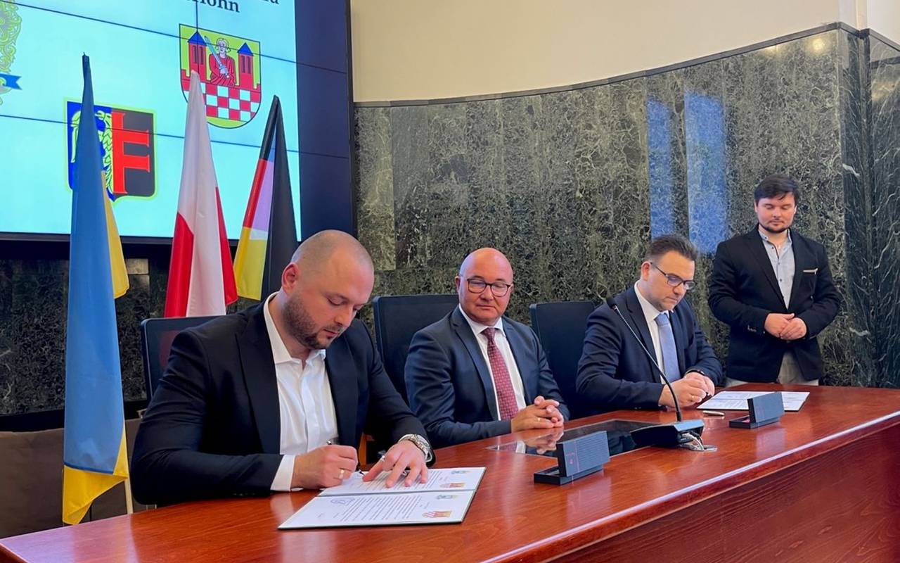 v.l.: stellv. Bürgermeister von Ternopil Ihor Krysovatyy, Stadtpräsident von Chorzów Andrej Kotala, Iserlohns Bürgermeister Michael Joithe