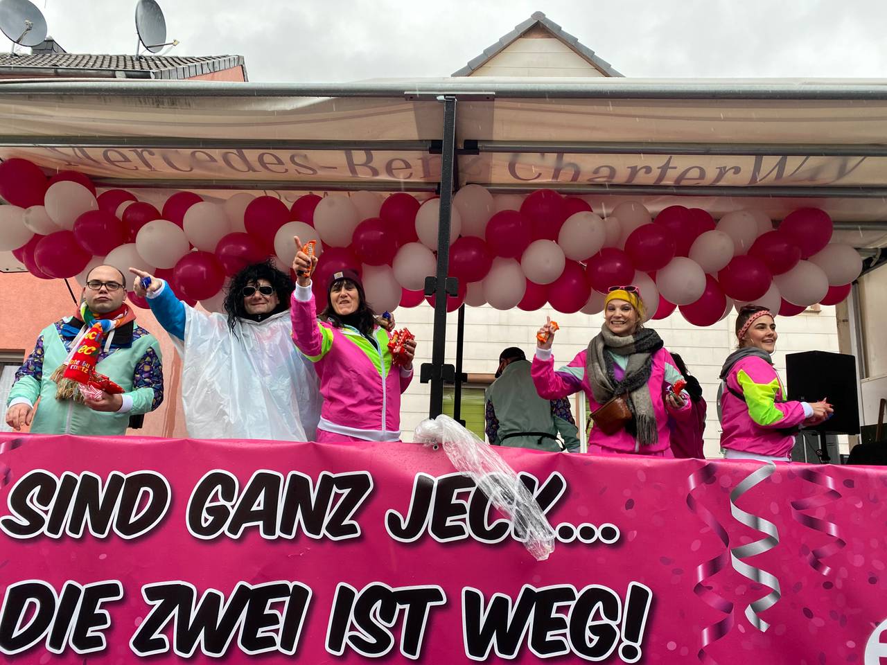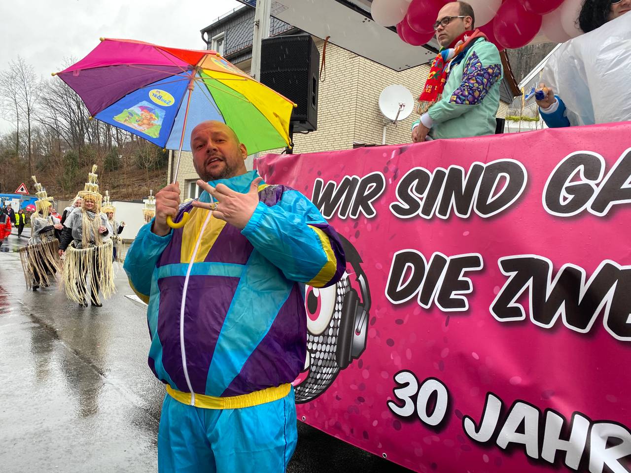 "Wir sind ganz jeck, die zwei ist weg" - das war das Motto von Radio MK dieses Jahr zum 30. Geburtstag beim Karnevalsumzug in Menden. Mit Jogginganzug und Goldkette ging's durch die Mendener Innenstadt. Auch die Jecken, die sich trotz des schlechten Wetters rausgewagt hatten, waren toll verkleidet.