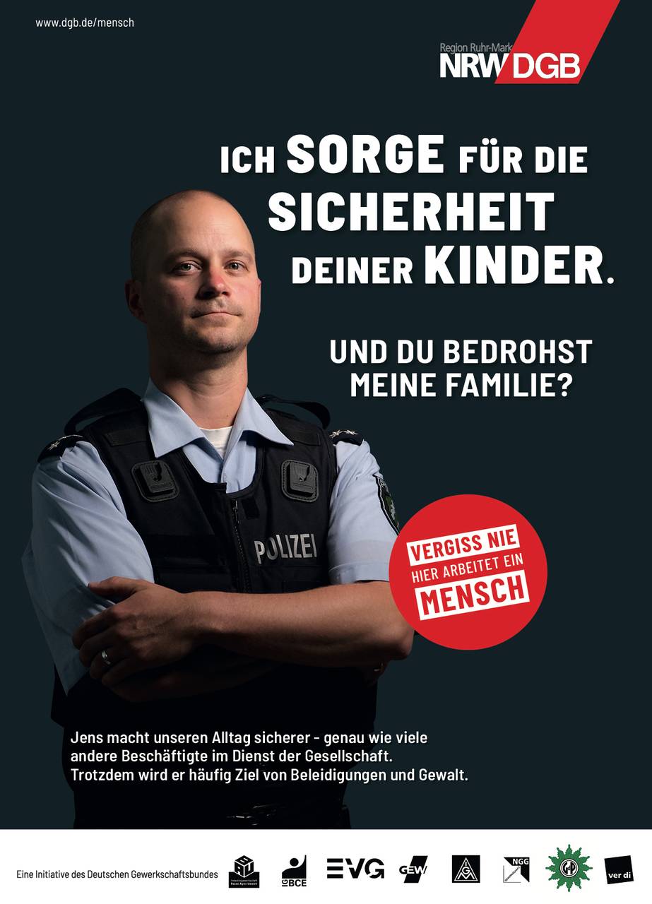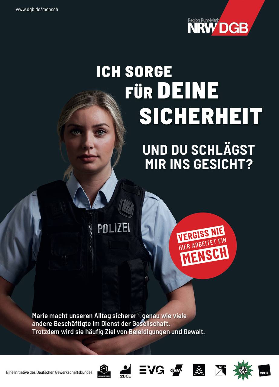 Polizisten müssen offenbar immer häufiger damit rechnen, im Dienst angegriffen und verletzt zu werden. Dabei scheint die Hemmschwelle für Gewalt gegen Polizisten deutlich zu sinken. Auch bei uns im Märkischen Kreis werden Polizisten bedroht, beleidigt, angespuckt oder mit Fäusten, Messer und Pistole angegriffen. Eine Plakataktion der Gewerkschaften soll ab heute darauf aufmerksam machen. Auf den Plakaten sind Polizistinnen und Polizisten zu sehen, die selbst schon Opfer von Übergriffen geworden sind. Die Öffentlichkeit soll verstehen, dass in jeder Uniform auch nur ein Mensch steckt, Frauen oder Männer, die einfach ihren Job machen.