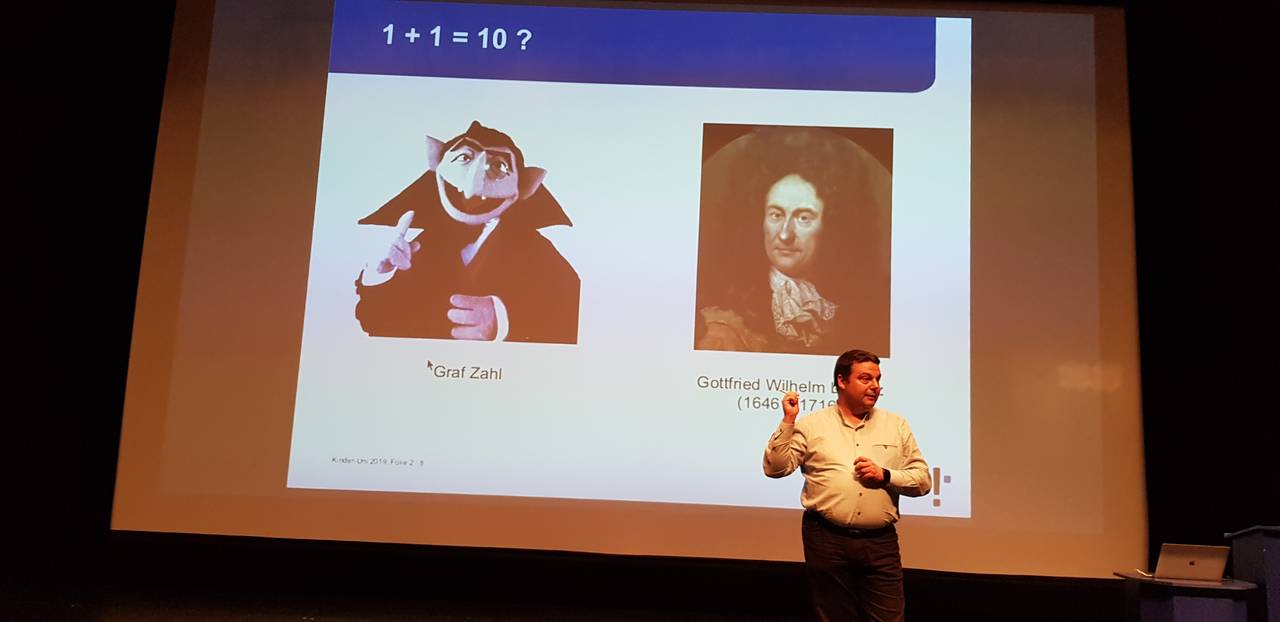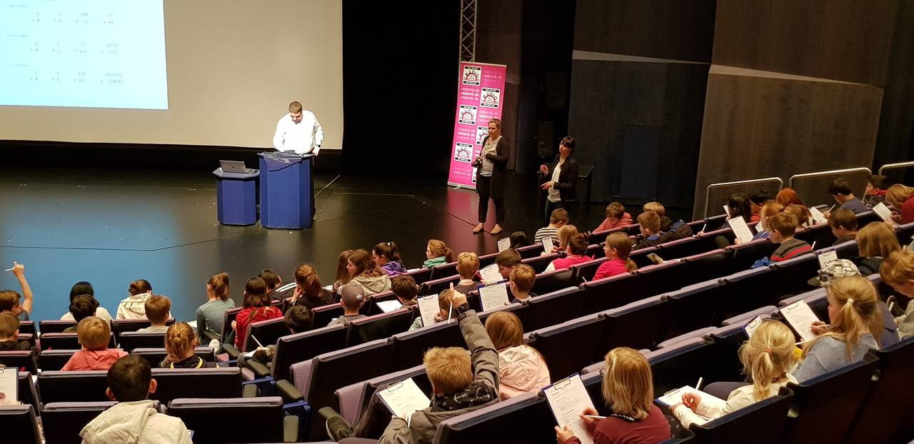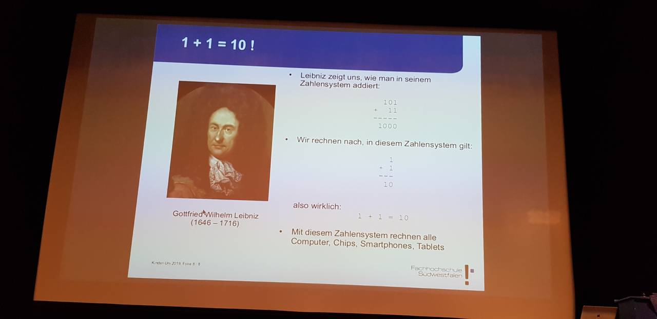 Zum Auftakt der Kinderuni in Lüdenscheid am Dienstag ging es darum, wie ein Computer zählt. Mehr als 150 begeisterte junge "Studenten" hörten sich die kindgerechte Vorlesung von Professor Stefan Böcker von der Fachhochschule Südwestfalen im Kulturhaus an.