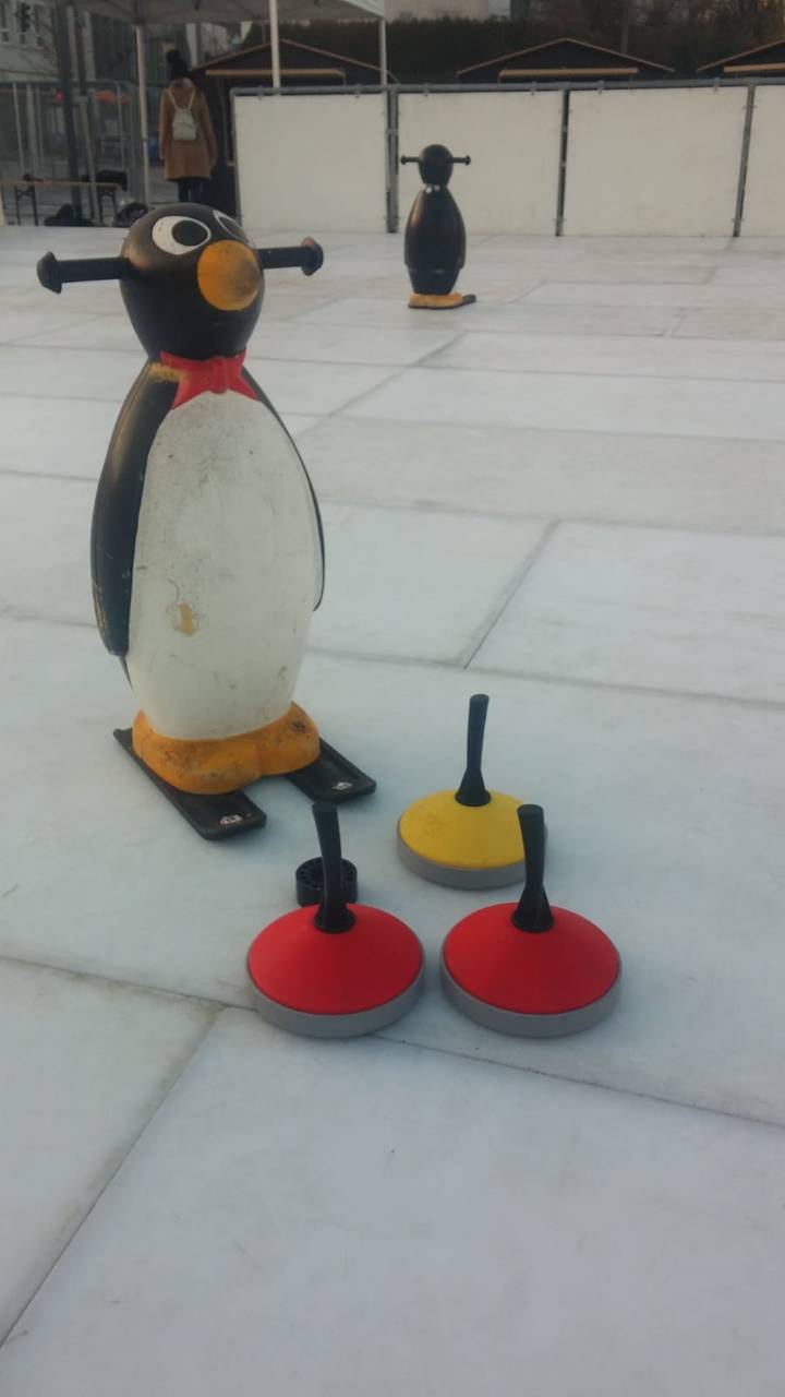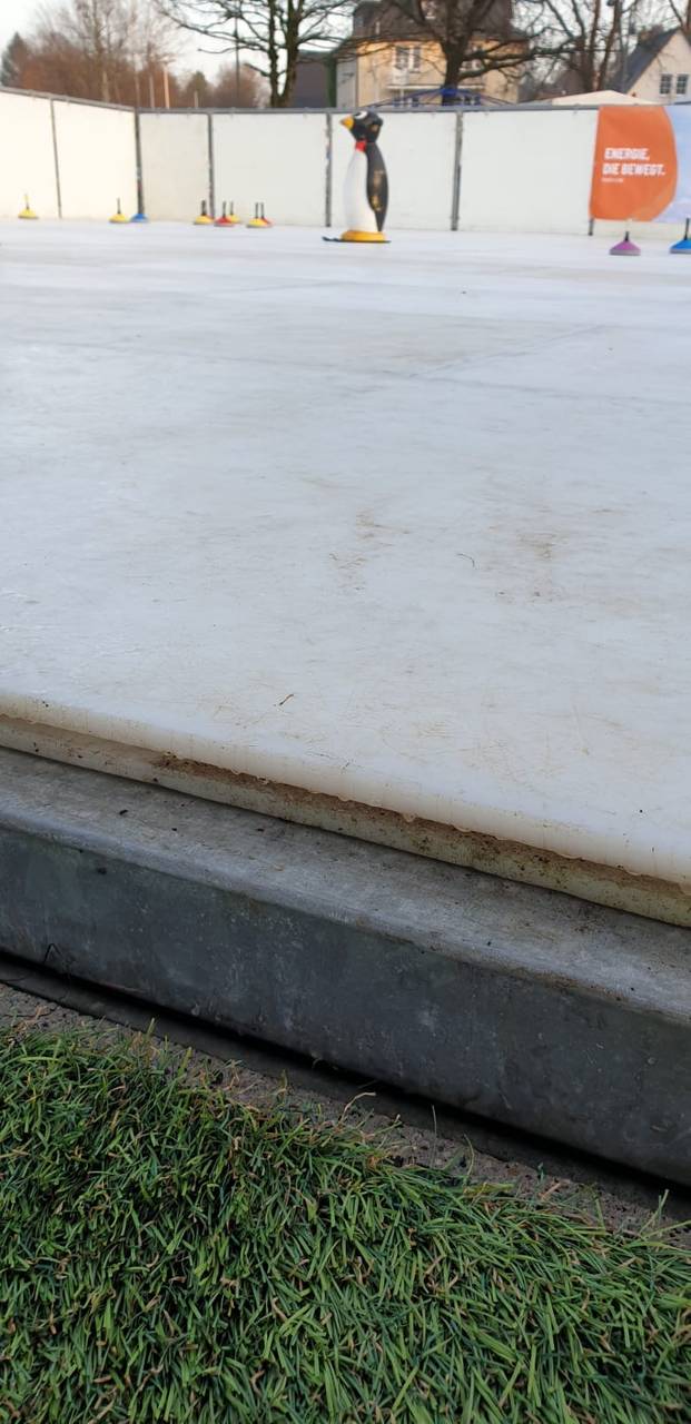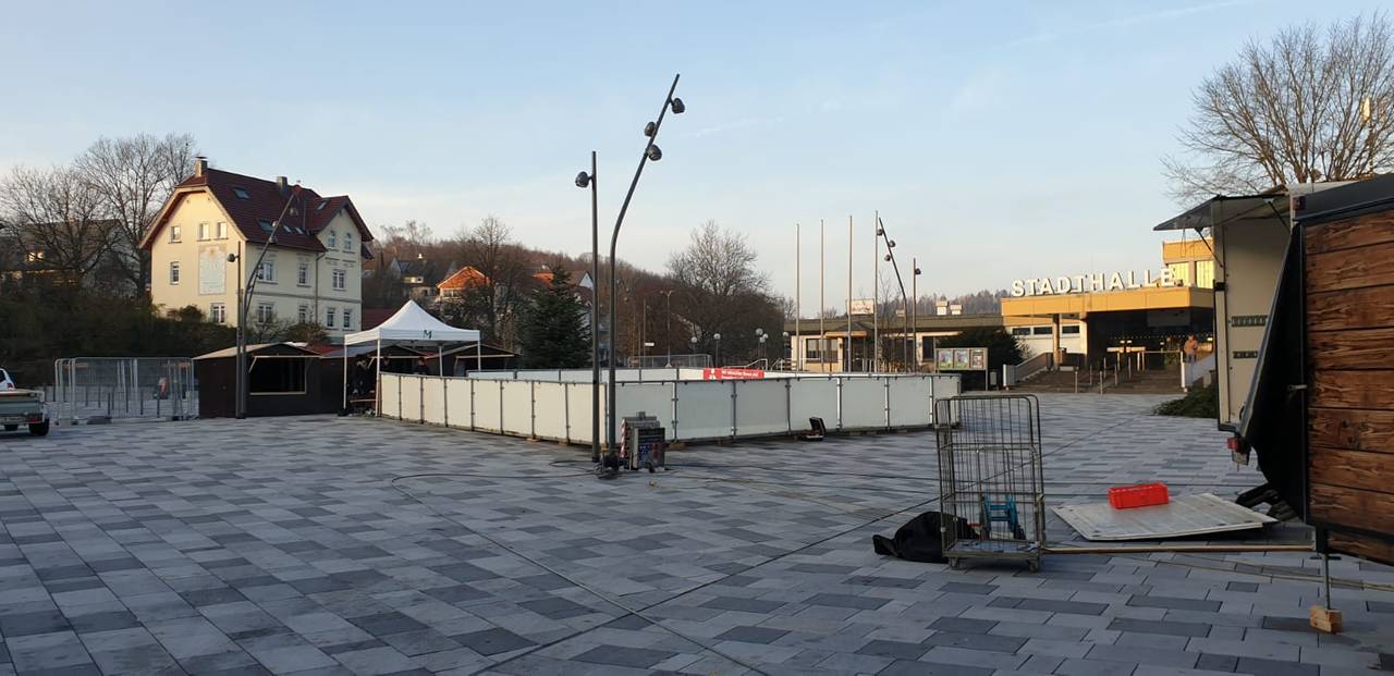 Sie ist Teil der "Winterlounge" auf dem neuen Otto-Fuchs-Platz. Ob beim Schlittschuhlaufen, Eisstockschießen oder in der Eisdisco - Dank einer Silikonbeschichtung wird aus mehreren Kunststoffplatten eine kleine Eisfläche. Und weil kein Wasser und kein Strom gebraucht werden, ist die Kunststoffbahn auch noch umweltfreundlich.