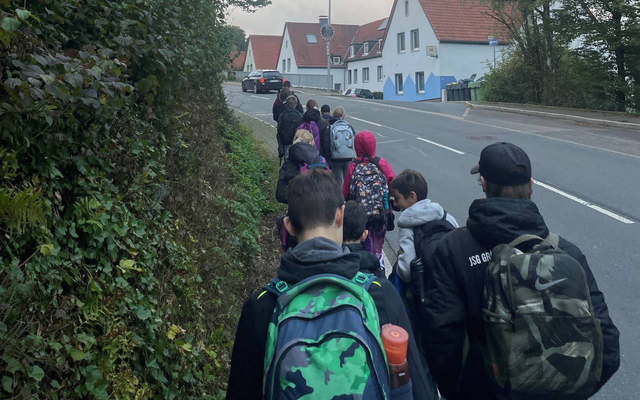 Das Ganze passiert im Rahmen der #gehmit Aktion zur Europäischen Mobilitäswoche. Die Initiative besteht schon seit vielen Jahren und soll die die Kinder und Jugendlichen dazu motivierenl, ihren Schulweg aktiv in Angriff zu nehmen. Das kann der ganze Schulweg sein, der zu Fuß zurückgelegt wird oder eben einfach die letzten Meter. Dazu gibt es mehrere Treffpunkte in der Nähe der Schule. Sie werden entweder von Lehrkräften begleitet oder – bei den Schülerinnen und Schülern der Primusschule – von den älteren Mitschülern der 10. Klasse, die die jüngeren Kinder auf ihrem Weg im Auge behalten.