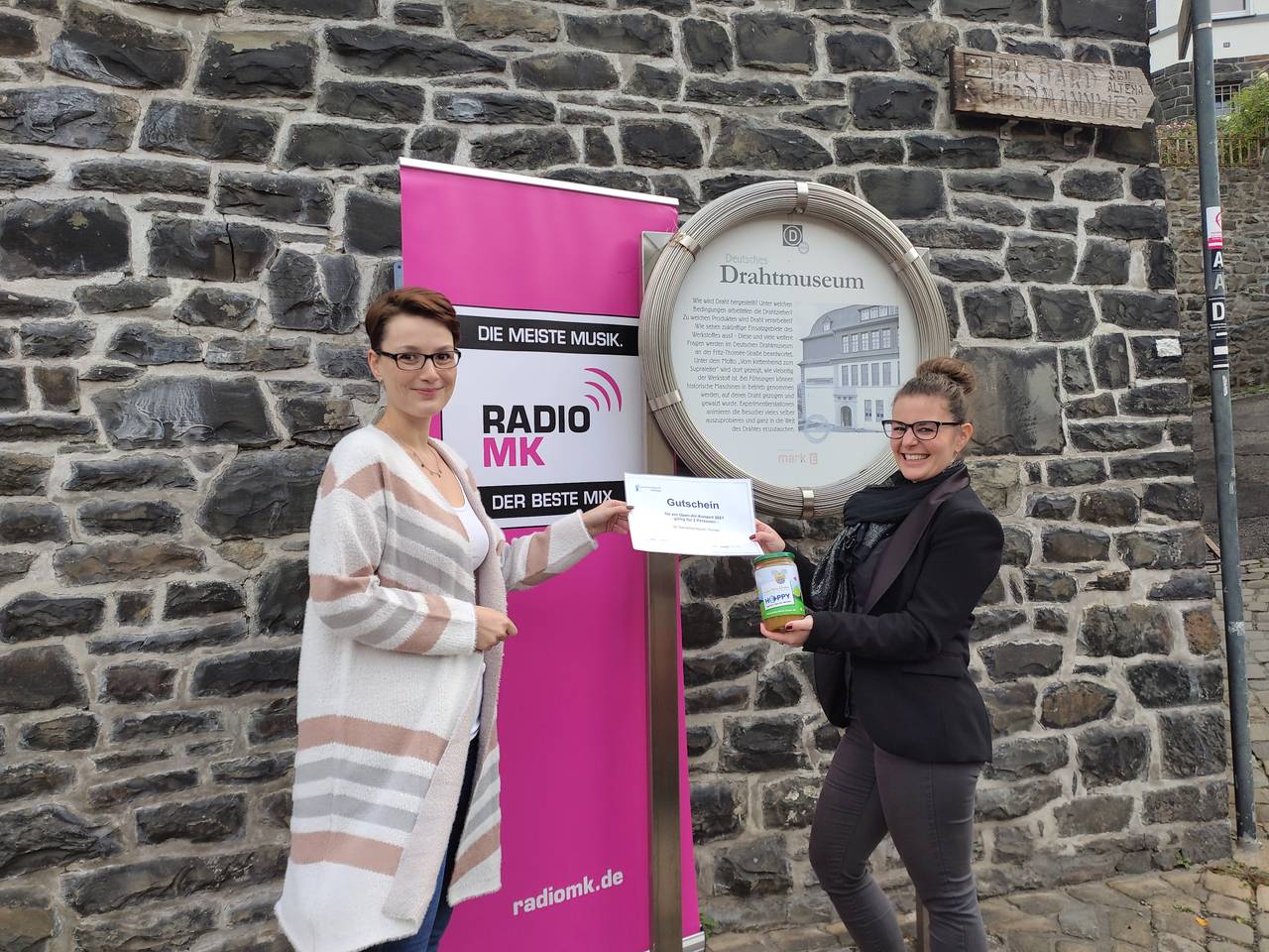 Vorletzte Runde der "Lucia unter Strom"-Aktion mit unserer Morgenmoderatorin Lucia Carogioiello von LUCIA & CO. - Die Radio MK Guten Morgen Show. Die zweitletzte Reise in Kooperation mit den Stadtwerken Menden führte Lucia mit dem E-Auto von Autohaus Bichmann in Menden, Hemer und Balve in die Heimat des Drahtes – zum Drahtmuseum in Altena. Hörerin Jacqueline aus Altena nutzte ihr Heimspiel aus und konnte die Karten für den Konzertsommer 2021 im Sauerlandpark Hemer gewinnen. Für sie geht es im nächsten Jahr zu Sarah Connor.