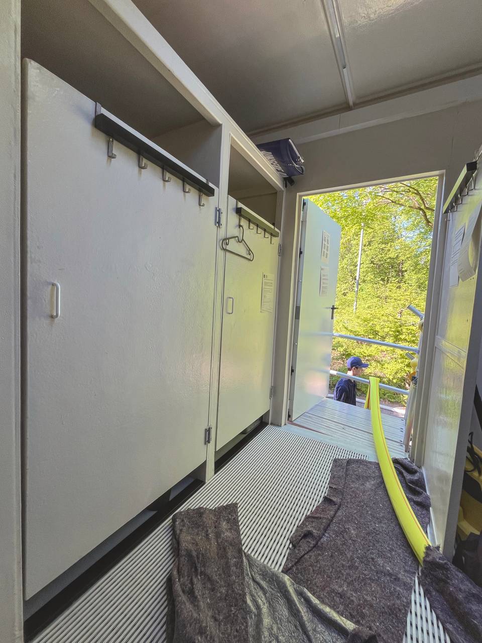 In Lüdenscheid steht seit rund drei Wochen ein mobiler Schwimmcontainer. Die Stadt Lüdenscheid hatte sich bei dem Projekt des Landes um so einen Container beworben. Ziel des Projekts ist es, Kinder frühzeitig ans Wasser zu gewöhnen und ihnen erste Schwimmfähigkeiten zu vermitteln. Der Hintergrund: Immer weniger Kinder in Deutschland können sicher schwimmen – ein Problem, das unter anderem durch den Mangel an Lehrschwimmbecken verschärft wird. Hier findet ihr bereits die Bilder vom Aufbau: