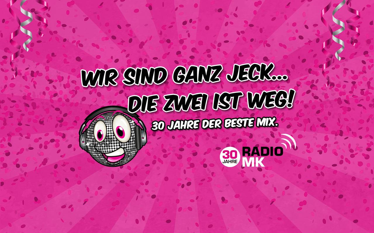 Und wir von Radio MK freuen uns auch schon .... denn am Sonntag sind wir mit dabei, wenn es wieder heißt: Menden Helau! In Menden startet um 14 Uhr der Tulpensonntags-Umzug. Und weil Radio MK dieses Jahr 30 wird, lautet unser Motto: "Wir sind ganz jeck, die zwei ist weg. 30 Jahre Radio MK".