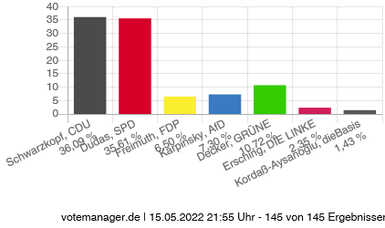 Bei den Zweitstimmen war es nicht ganz so knapp. Hier konnte die CDU mit 36,51Prozent vor der SPD (28,82 Prozent) punkten.