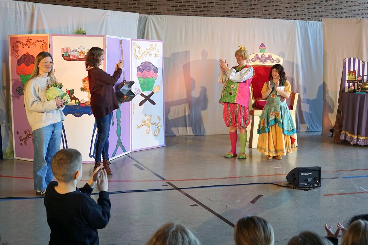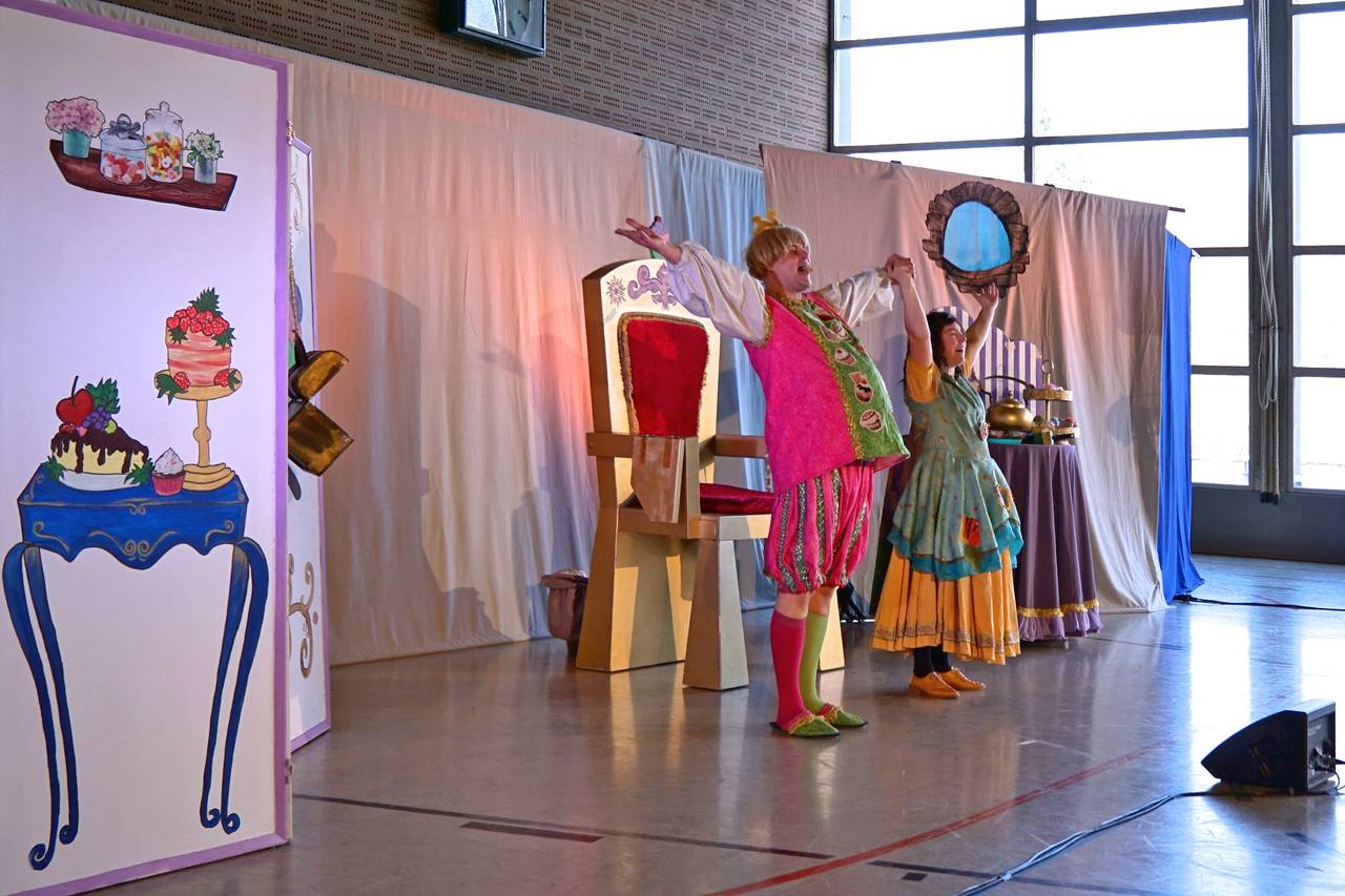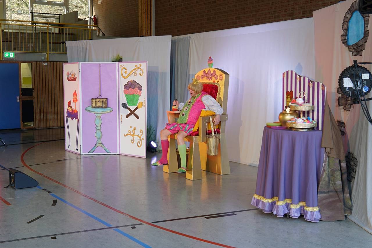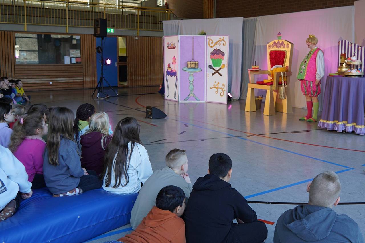 Wir von Radio MK haben eine Patenschule. Die Saatschule in Iserlohn. Sie trägt das Siegel "Schule ohne Rassismus - Schule mit Courage". Dort klang die Turnhalle heute Mittag (27.03.) echt nicht nach Turnhalle - denn: Das "Achja-Theater" war da. Mit Maja Rodigast und Robert Heinle auf der Bühne. Das Stück hieß: "Meins-Meins-Deins". Die Bühne: Ein Märchenhafter Hof. Mit einem Prinzen, der seine Angestellten ärgert und tritzt und Bittbriefe ohne nachdenken ablehnt. Denn: Ihm geht es ja gut. Der Prinz hat alles, vor allem ganz viele Zuckertörtchen.