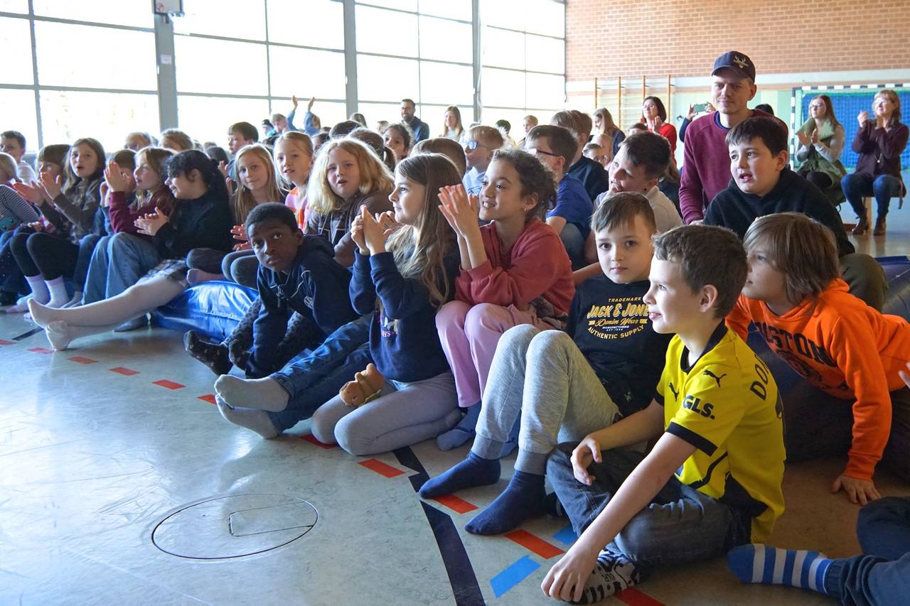 Das ist bei dem vor dem Krieg aus seinem Land geflüchteten Baumeister und seiner Tochter anders. Die beiden müssen im Wald hausen, weil der Prinz dem Baumeister nicht erlaubt, in seinem Land zu arbeiten. Er lehnt ja alles einfach ab. Aber das hat ihm das Flüchtlingsmädchen ganz schön abgewöhnt. Und sich mit dem Prinzen angefreundet. Auf jeden Fall haben die Kinder flott gemerkt, das Helfen und Teilen etwas gutes sind, Vorurteile Blödsinn und Integration wichtig. Mitgeholfen haben das Integrations-Team des Märkischen Kreises und die Sparkasse. Das ganze war eine von zwei großen Aktionen der Schule in den internationalen Wochen gegen Rassismus. / FrK