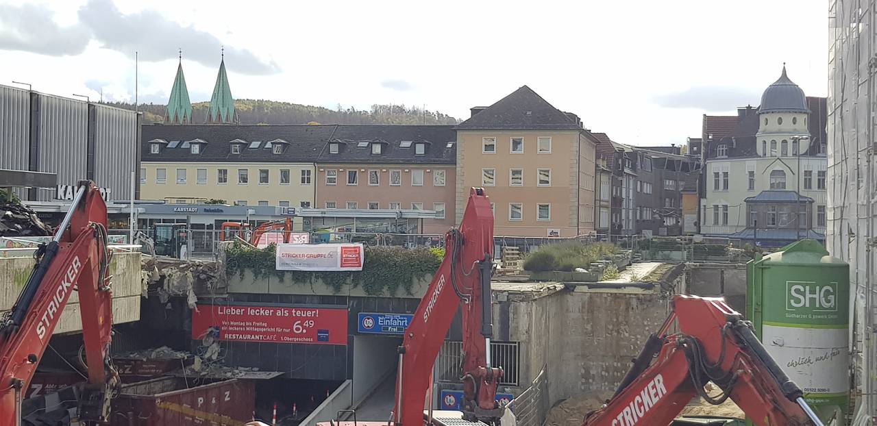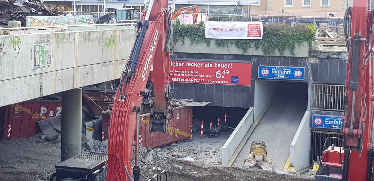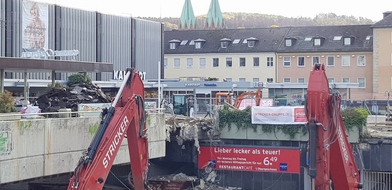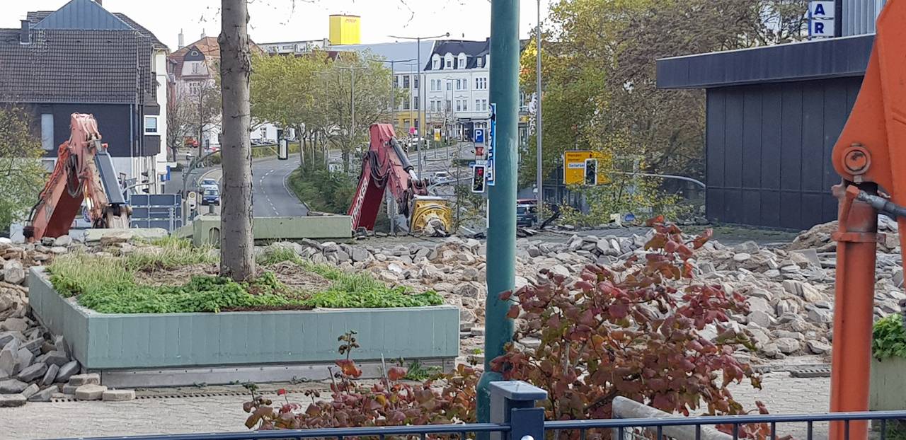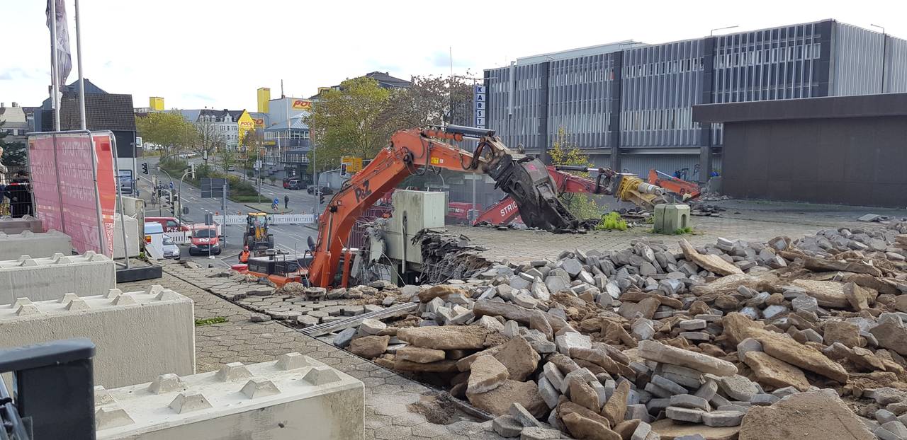 Es ist soweit: die Umgestaltung des Schillerplatzes in Iserlohn hat begonnen. Mehrere Bagger haben heute damit begonnen, die Schillerplatz-Brücke abzureißen. Der Theodor-Heuss-Ring ist während der Abrissarbeiten voll gesperrt.