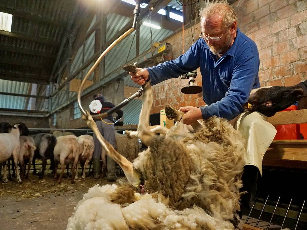 Also kommt die Wolle ab - jetzt. Das ist eine ganz schöne Knochenarbeit. Schließlich müssen ein paar hunder Schafe geschoren werden. Eines nach dem anderen. Für jedes Schaf braucht der Friseur knapp drei Minuten. Wenn es nicht rumzickt... Da staunten auch die Kids aus der Kinderbetreuung Regenbogen KJU e.V. Iserlohn-Oestrich nicht schlecht, wie flott das trotzdem geht.