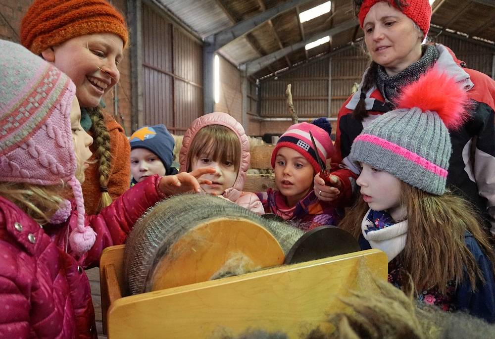 Die Vorschulkinder waren fast den ganzen Vormittag auf dem Stiftungshof und haben da von Susanne Oelmann-Saul, Daniela Beisemann und natürlich Schäfer Maik Randolph alles rund um die Wolle erfahren und auch selbst ausprobieren können. Und klar: Schafe streicheln ohne Ende stand auch auf dem Programm.