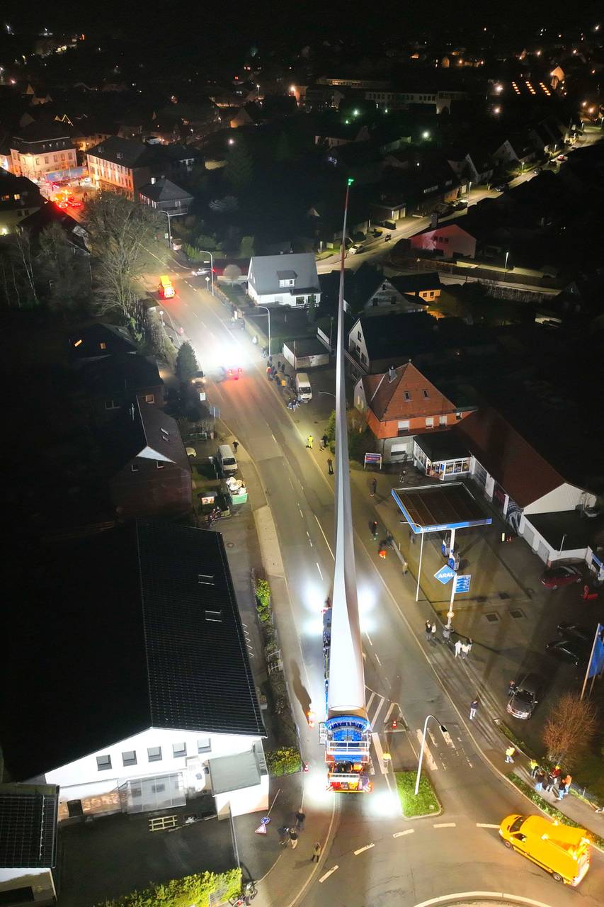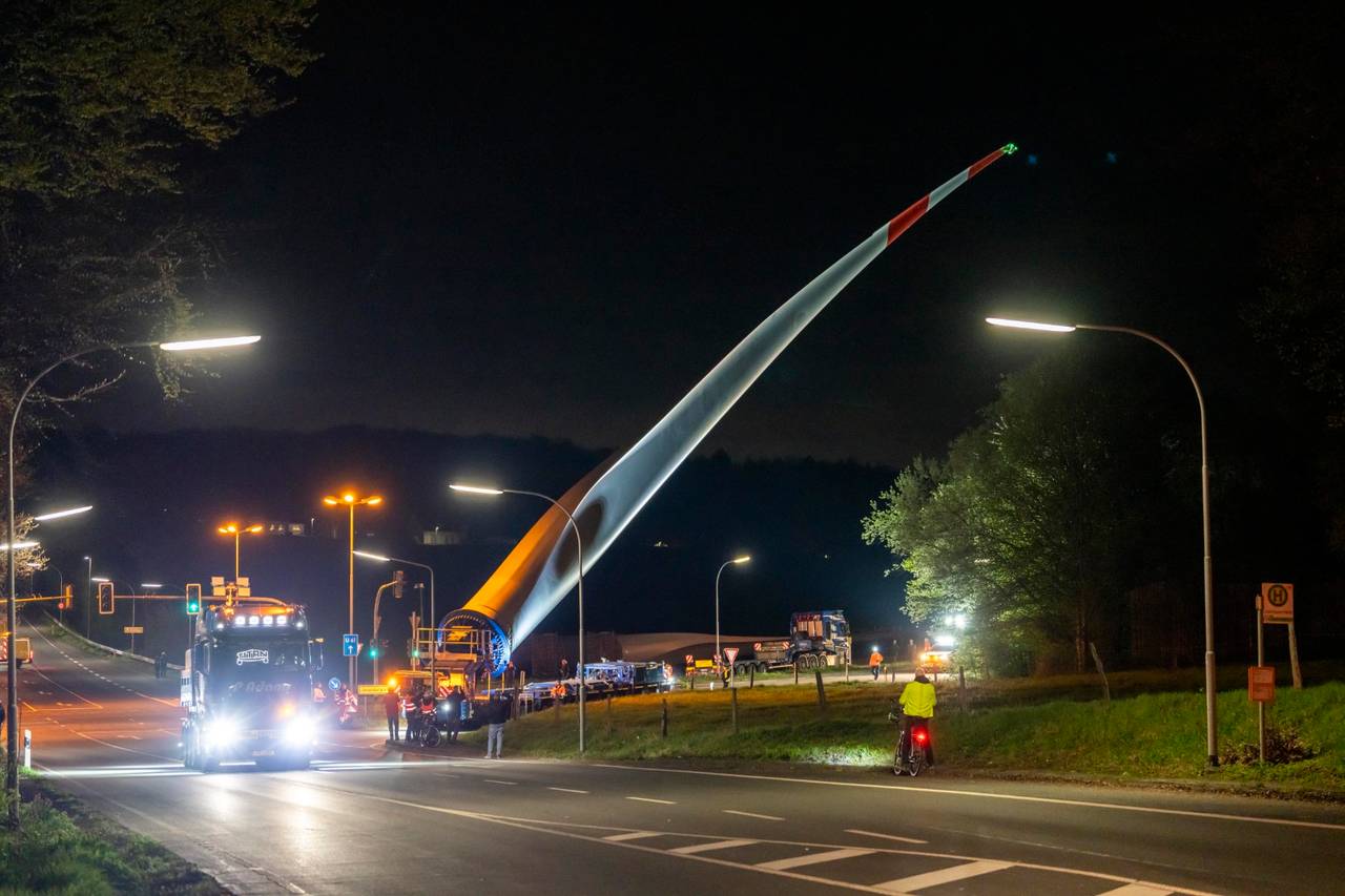Am Freitag (19.04) rollt am späten Abend ein Schwertransport durch Halver. An Bord wird er den Flügel für ein neues Windrad in Hagen haben. Der Schwertransporter ist bereits am Donnerstag (18.04.) in Schwelm gestartet und soll in der kommenden Nacht über Halver und Breckerfeld nach Hagen fahren. Die Einfahrt in den Windpark in Rafflenbeul erfolgt Samstagmorgen bei Tageslicht. Genehmigt ist der Transport von 22 Uhr Abend bis 6 Uhr morgens. Denn wenn der Berufsverkehr beginnt, dürfen die Schwertransporte nicht mehr weiterfahren und müssen am Straßenrand abgestellt werden.