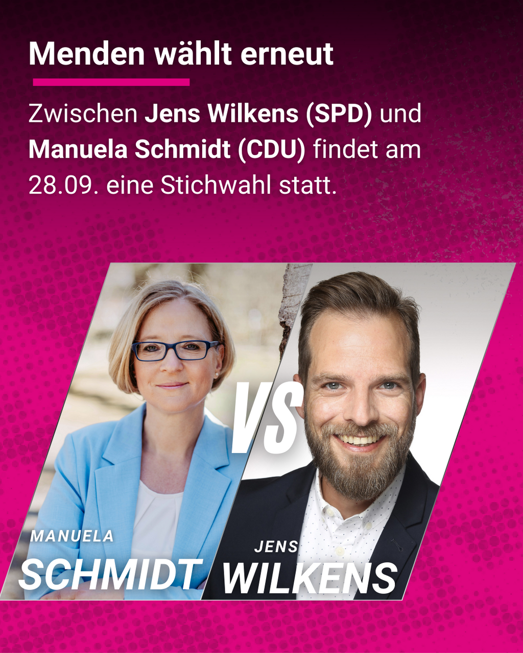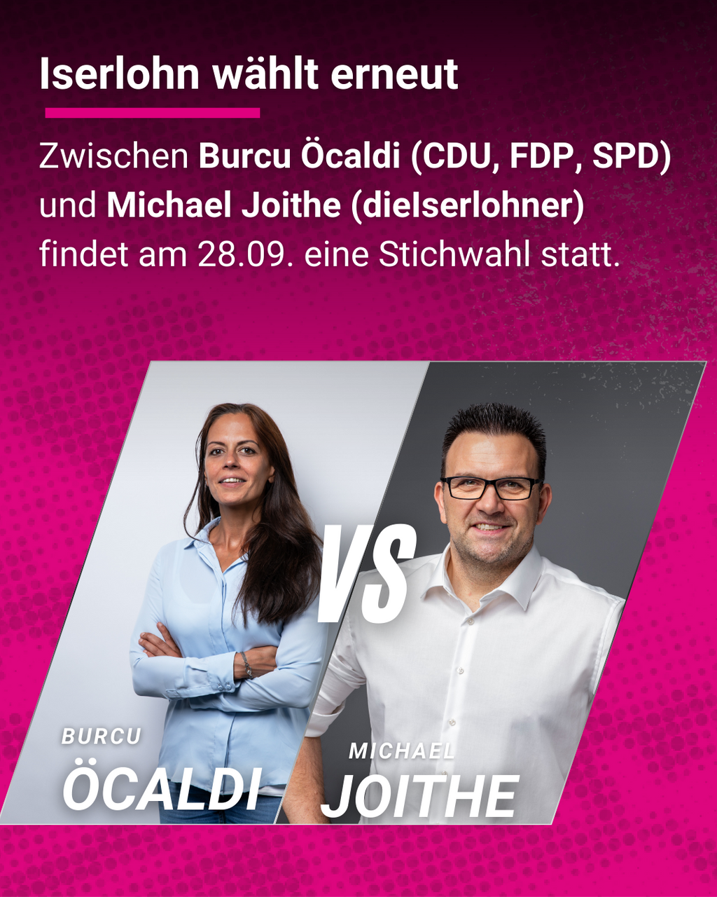 Am Sonntag haben die Wählerinnen und Wähler im Märkischen Kreis in mehreren Städten und Gemeinden erneut über ihre neuen Bürgermeisterinnen oder Bürgermeister entschieden. Nachdem im ersten Wahlgang am 14.09 keine Kandidatin oder kein Kandidat die erforderliche absolute Mehrheit erreicht hat, kam es zur Stichwahl in Iserlohn, Lüdenscheid, Plettenberg, Halver, Menden und Schalksmühle.