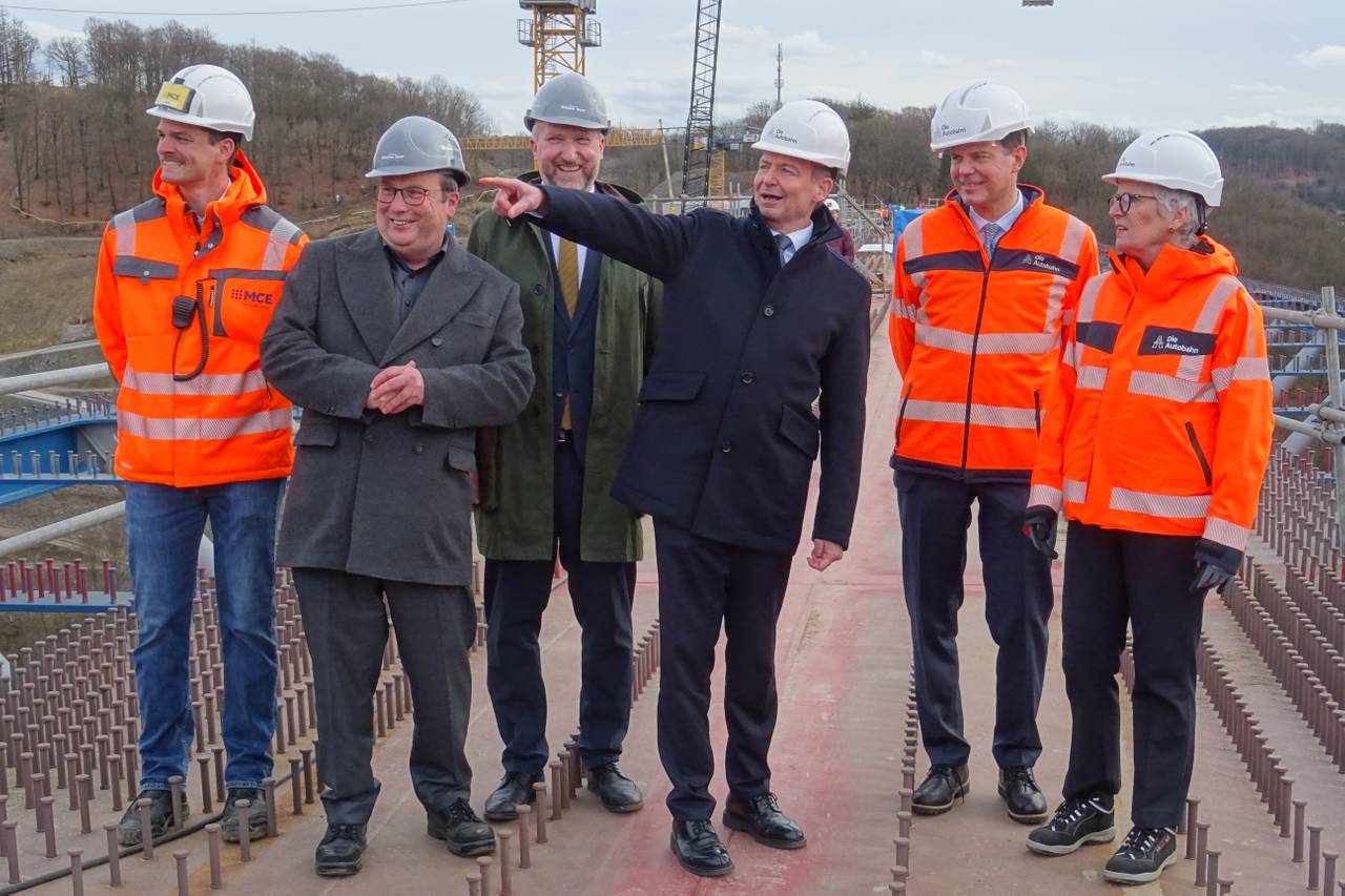 Der Bundesverkehrsminister Volker Wissing ist vor Ort. Allerdings gibt es noch keine Stahlhochzeit. Zurzeit sind die beiden Hälften der Brücke noch zu weit voneinander entfernt und noch nicht auf einer Höhe. Laut der Autobahn werden die beiden Teile am morgigen Mittwoch (26.02.) aneinandergesetzt, auf die gleiche Höhe gebracht und zusammengeschweißt.