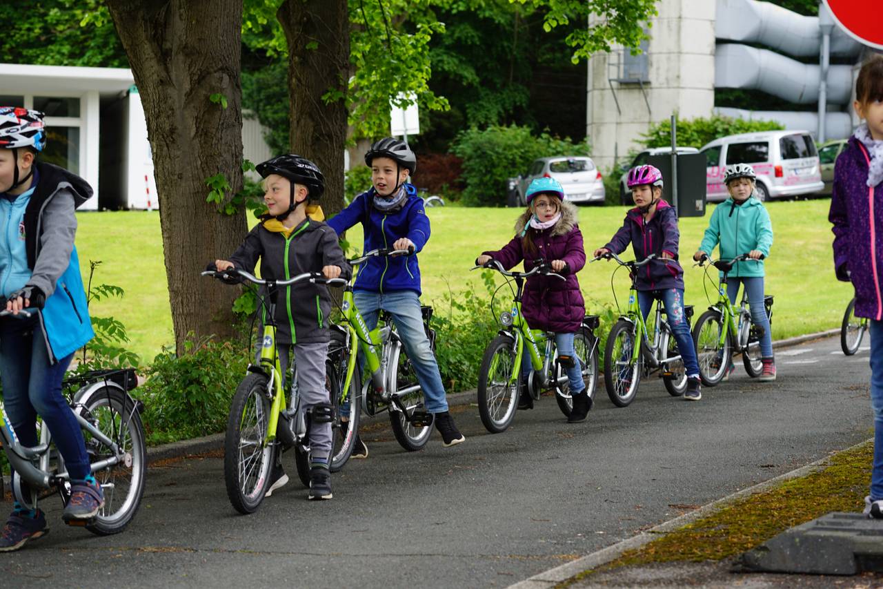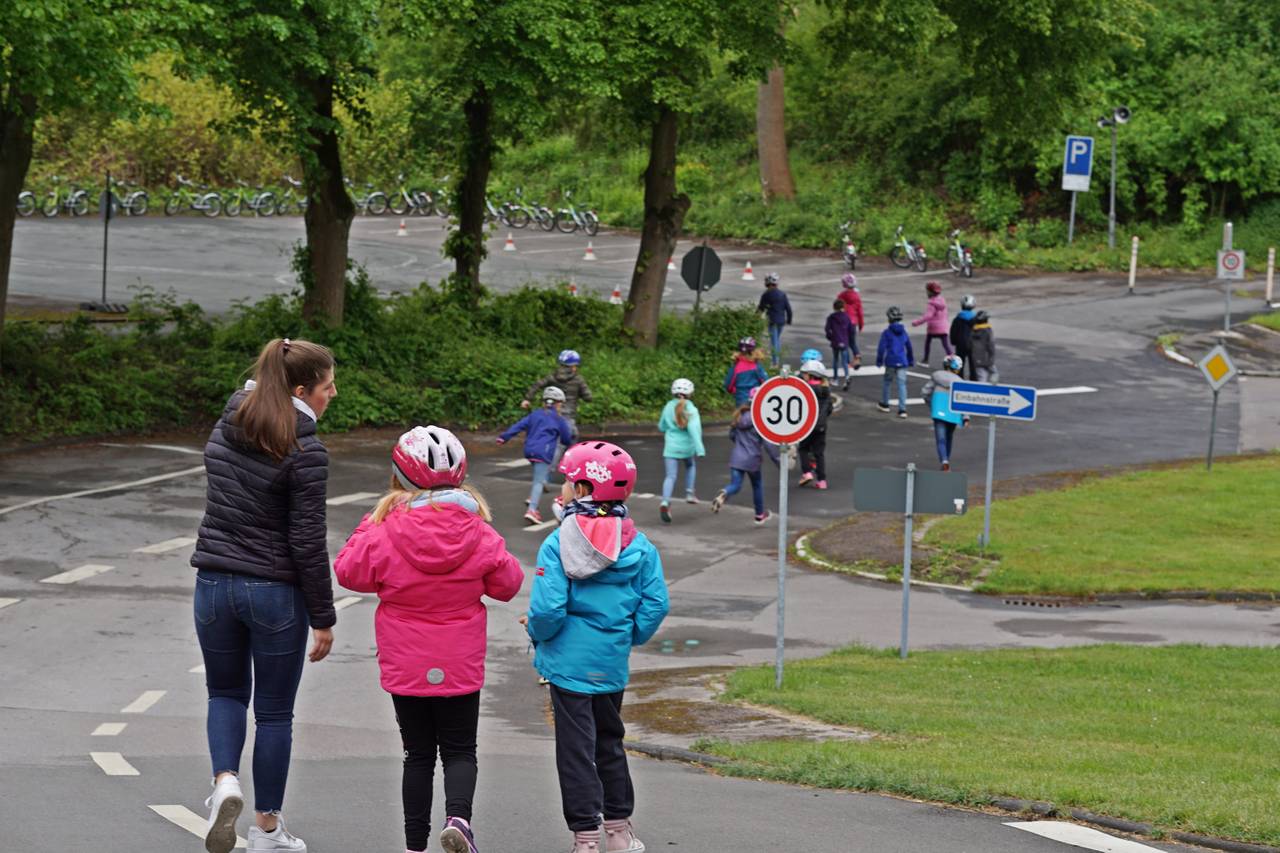 Den tollen Preis hatte die 2. Klasse der Albert-Schweitzer-Grundschule vom Lahrfeld in Menden beim Stadtradeln gewonnen: Nämlich einen Vormittag auf dem Verkehrsübungsplatz der Iserlohner Verkehrswacht. Da konnten die Kids dann mit Lehrerin Stefanie Schulte-Spancken und den Trainern von der Verkehrswacht richtig Fahrradfahren üben. Manchmal klappt das nämlich mit dem Arm raushalten und Abbiegen gleichzeitig noch nicht so gut und auch die Verkehrsregeln sollte man können und auch mit dem Fahrrad über eine Wippe fahren oder in einer liegenden Acht zwischen den kleinen Hütchen sauber durchkommen. Das Schüler aus einer anderen Stadt als Iserlohn auf diesem Platz üben ist eher selten. Hier war es ja ein Gewinn. Den gibts übrigens auch dieses Jahr beim Stadtradeln in Menden zu gewinnen. Beim Stadtradeln geht es darum, möglichst viele Menschen für das klimafreundliche Fahrradfahren zu gewinnen.